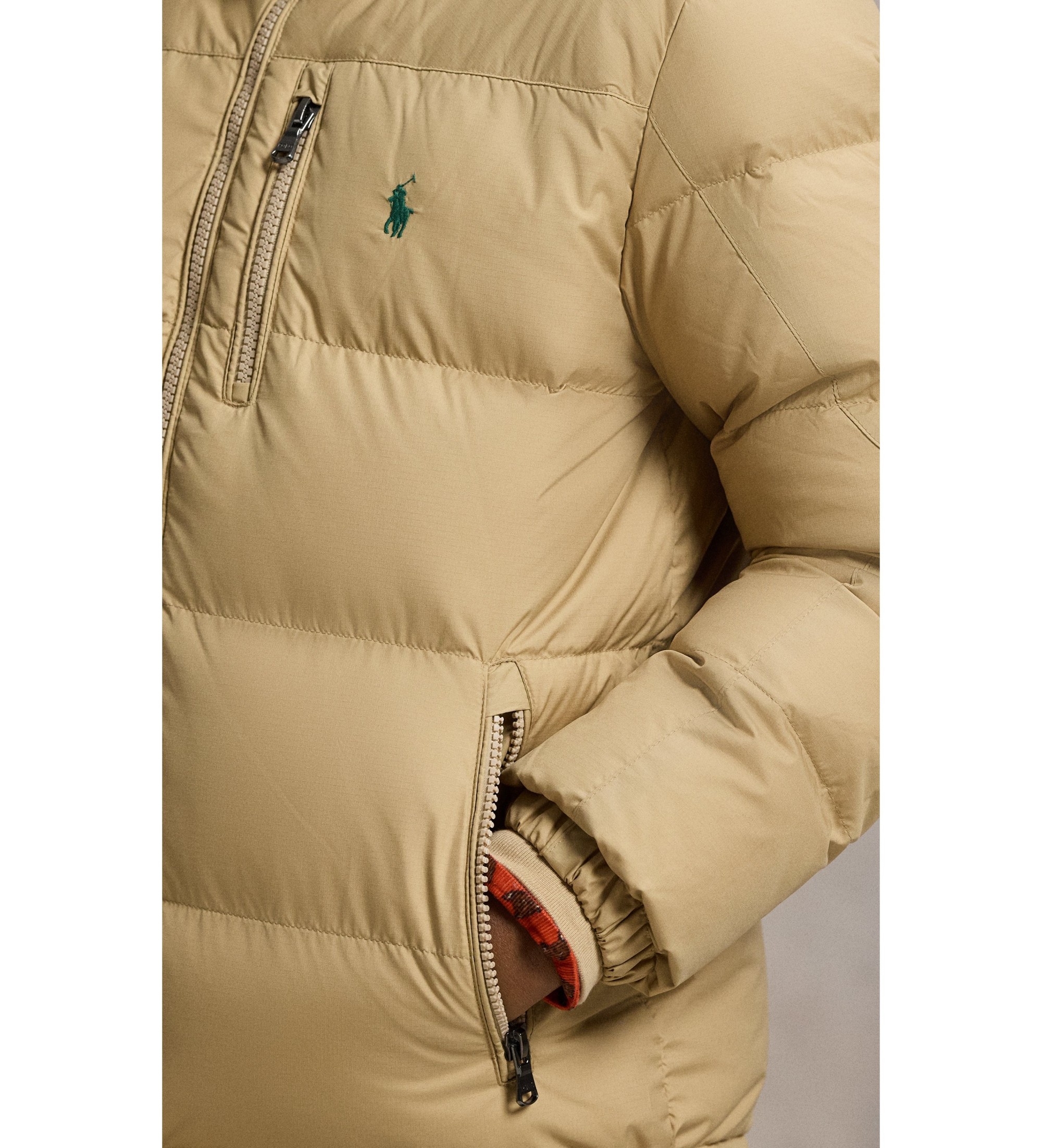 Esta chaqueta cuenta con una capa exterior de ripstop repelente al agua, plumón con relleno de 650 fill-power y capucha desmontable para mayor protección. Lleva bordado nuestro poni característico en el pecho izquierdo.