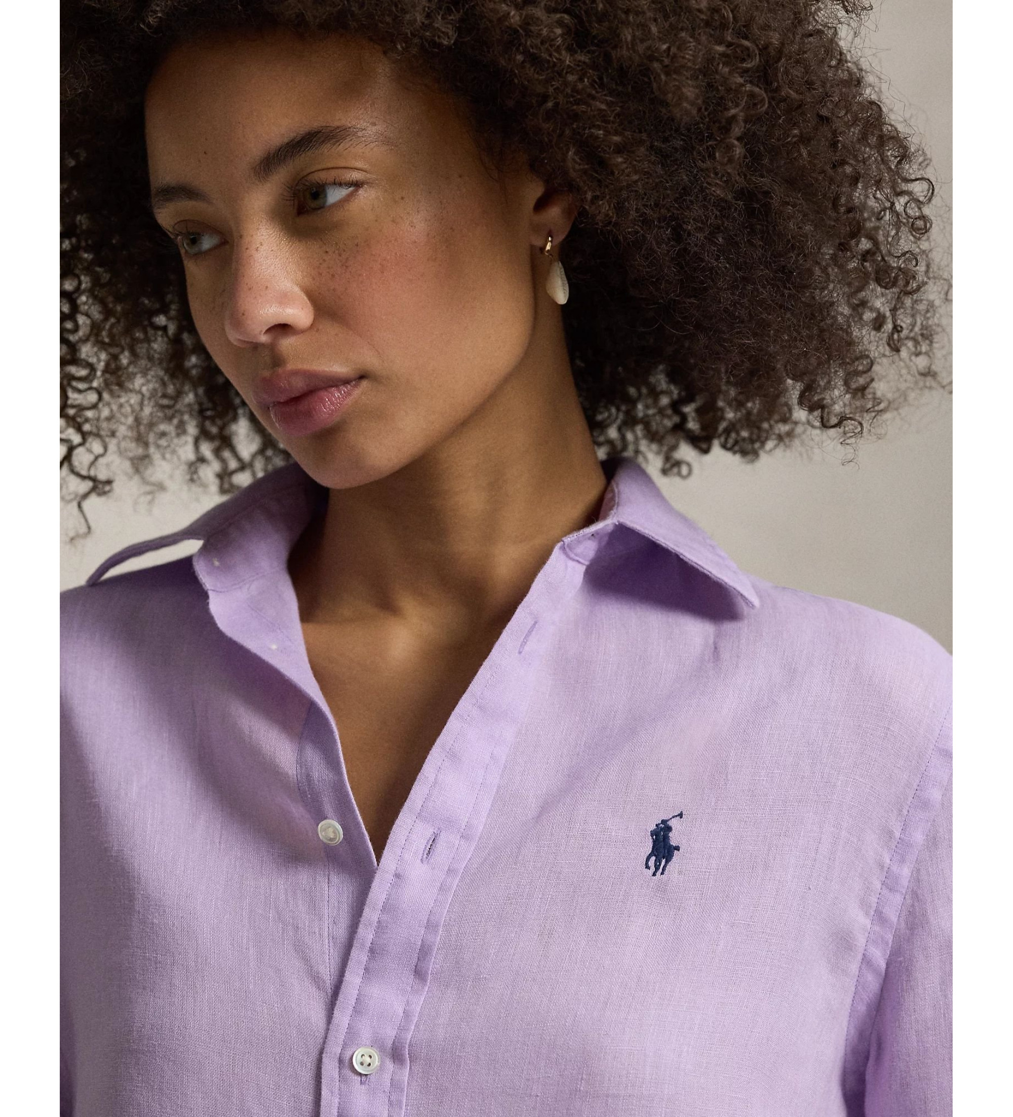 Esta camisa Straight Fit se ha tejido con lino ligero y está adornada con botones de concha y el caballo marca de la casa meticulosamente bordado.