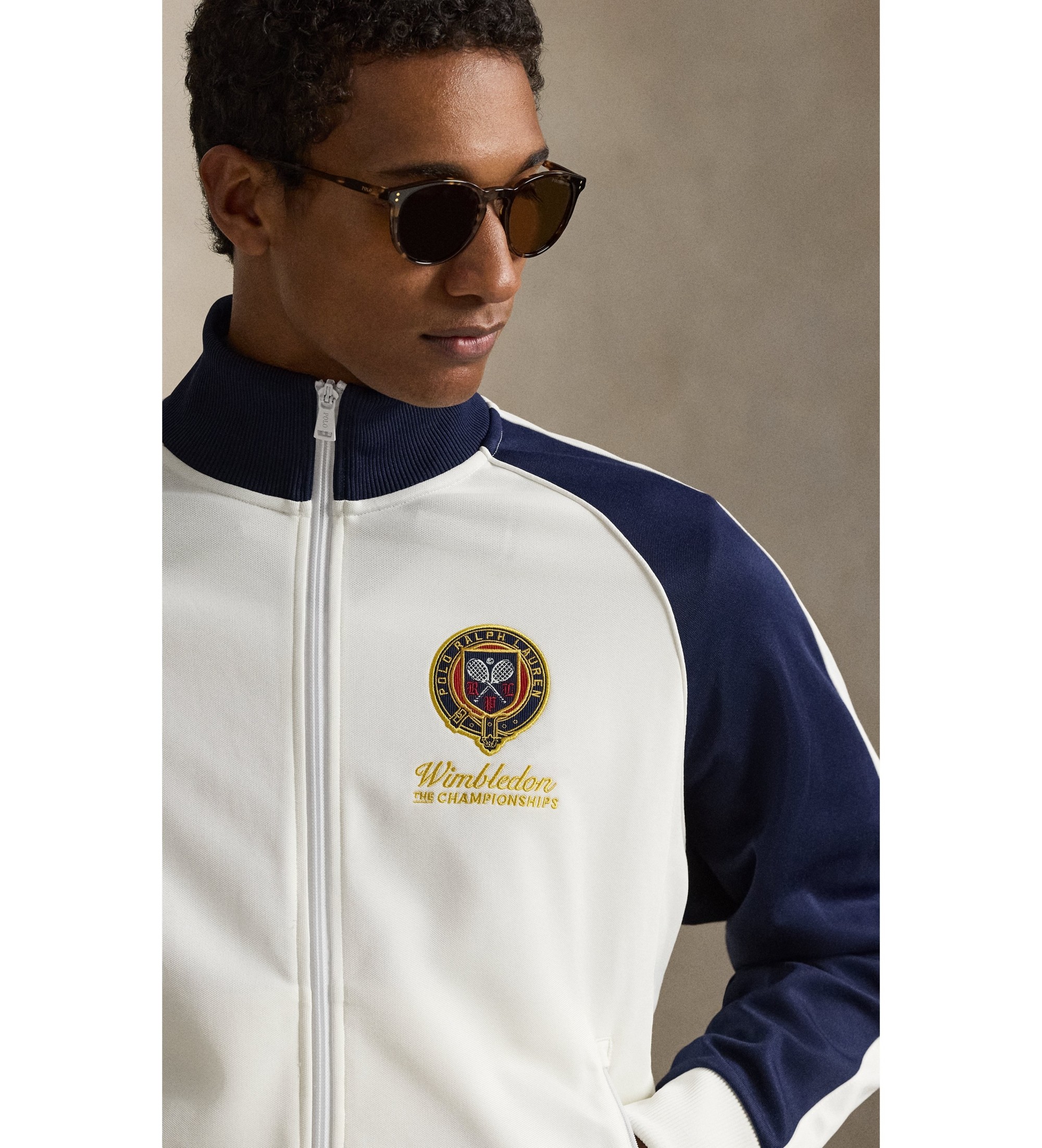 Esta chaqueta deportiva, que forma parte de nuestra colección para celebrar Wimbledon 2026, combina un distintivo parche inspirado en el tenis con el bordado «Wimbledon The Championships». Su silueta deportiva contrasta con un suave tejido de doble punto que proporciona una sensación agradable y cómoda.
