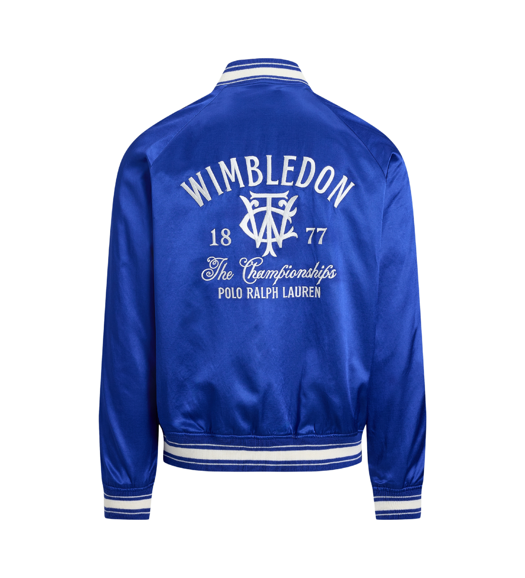 Esta chaqueta de mezcla de algodón, que forma parte de nuestra colección conmemorativa de Wimbledon 2026, luce el logotipo del torneo y el bordado de “Polo Ralph Lauren”. El año 1877, que aparece en el pecho, hace referencia al año inaugural del Campeonato de Wimbledon.