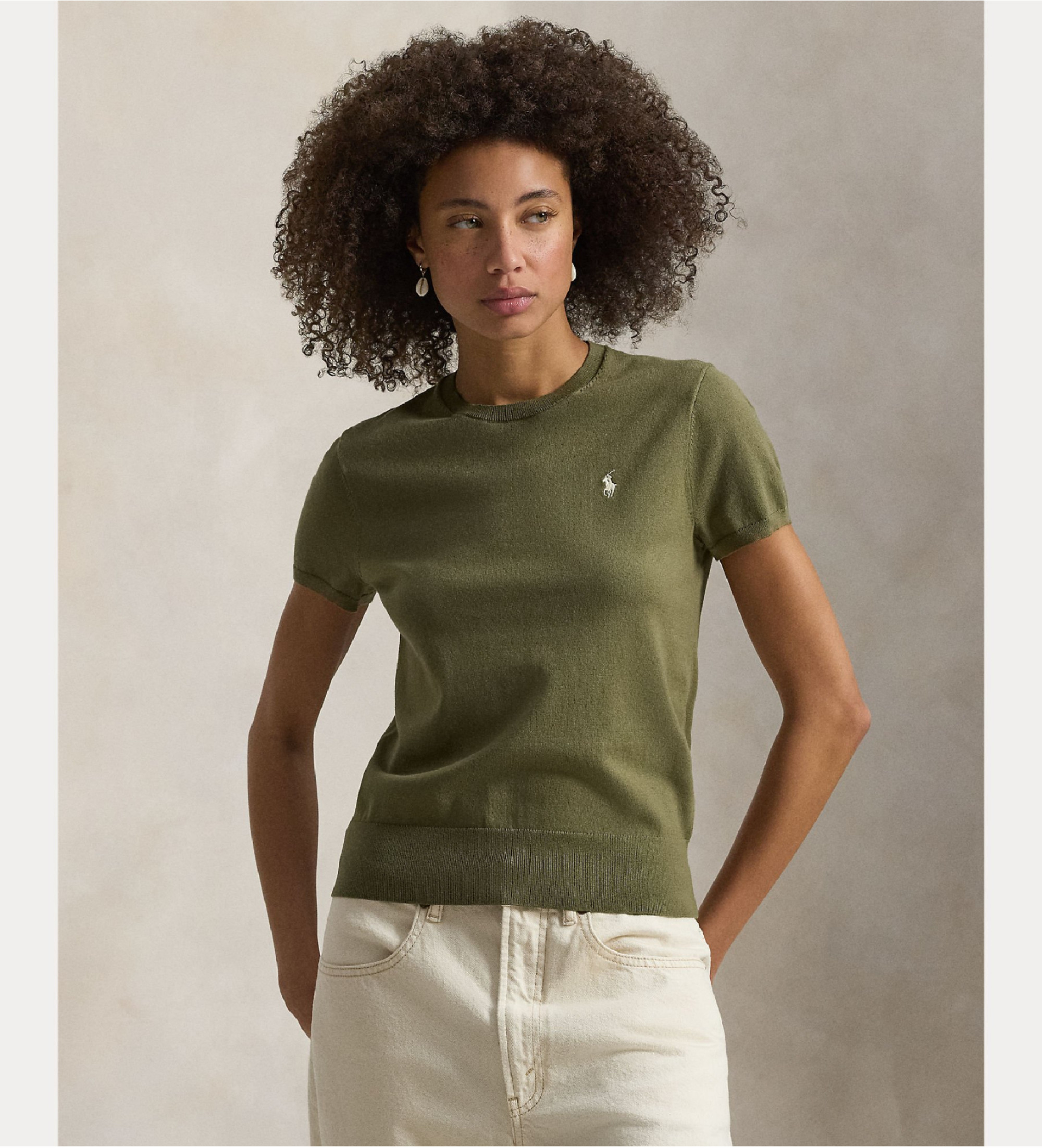 Jersey de manga corta confeccionado en mezcla suave de algodón, con un cuello redondo clásico. Destaca por el bordado del icónico Pony en el pecho, aportando un toque distintivo y elegante.