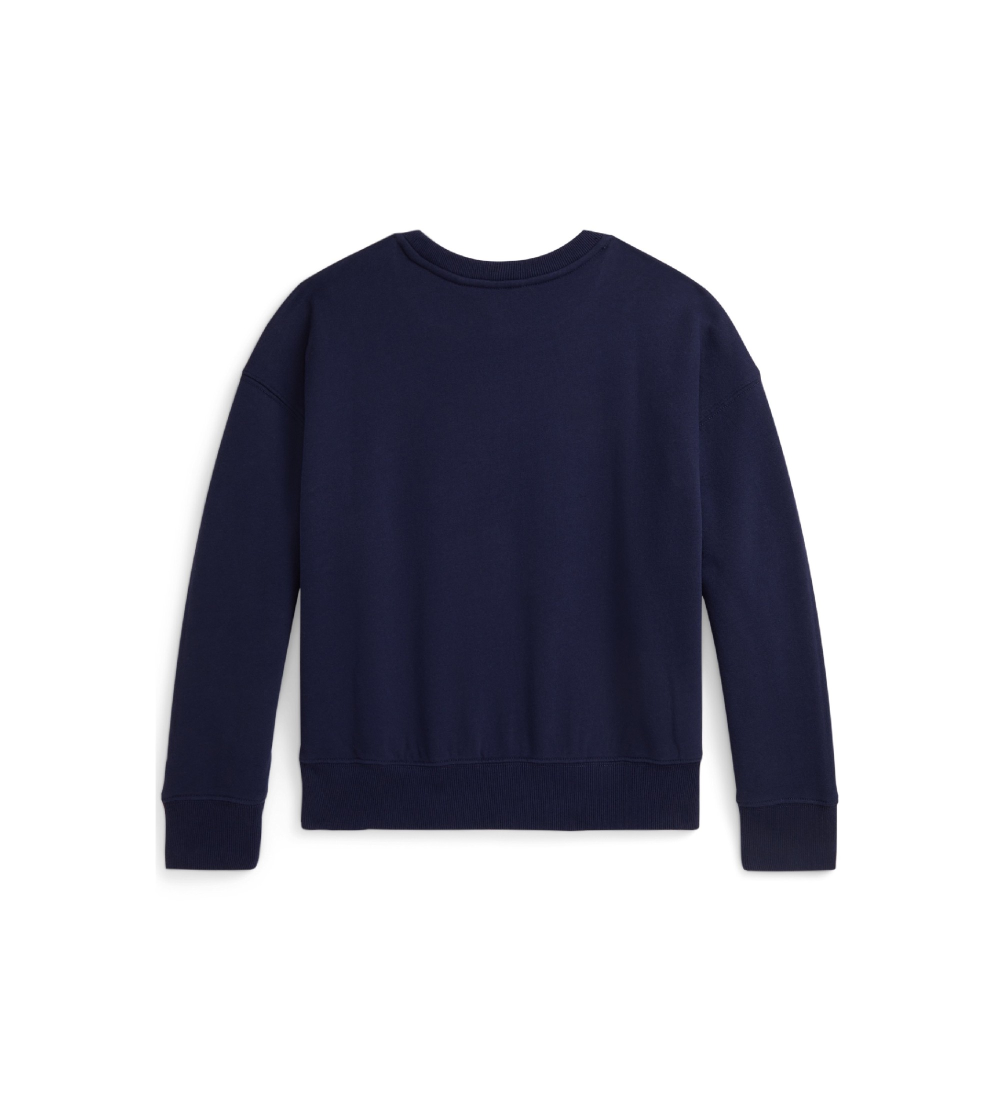 60 % algodón, 40 % poliéster. Lavable a máquina. Corte cuadrado. La talla M tiene un largo de cuerpo de 49,5 cm (delantero y trasero) y un largo de manga de 67,5 cm. El largo de manga se mide desde el centro de la nuca. Cuello redondo. Mangas largas con hombros caídos y puños acanalados. Polo Bear, "Polo Bear by Ralph Lauren" y "Ralph Lauren" estampados en el centro delantero. Detalles bordados. Bajo acanalado. Importado.