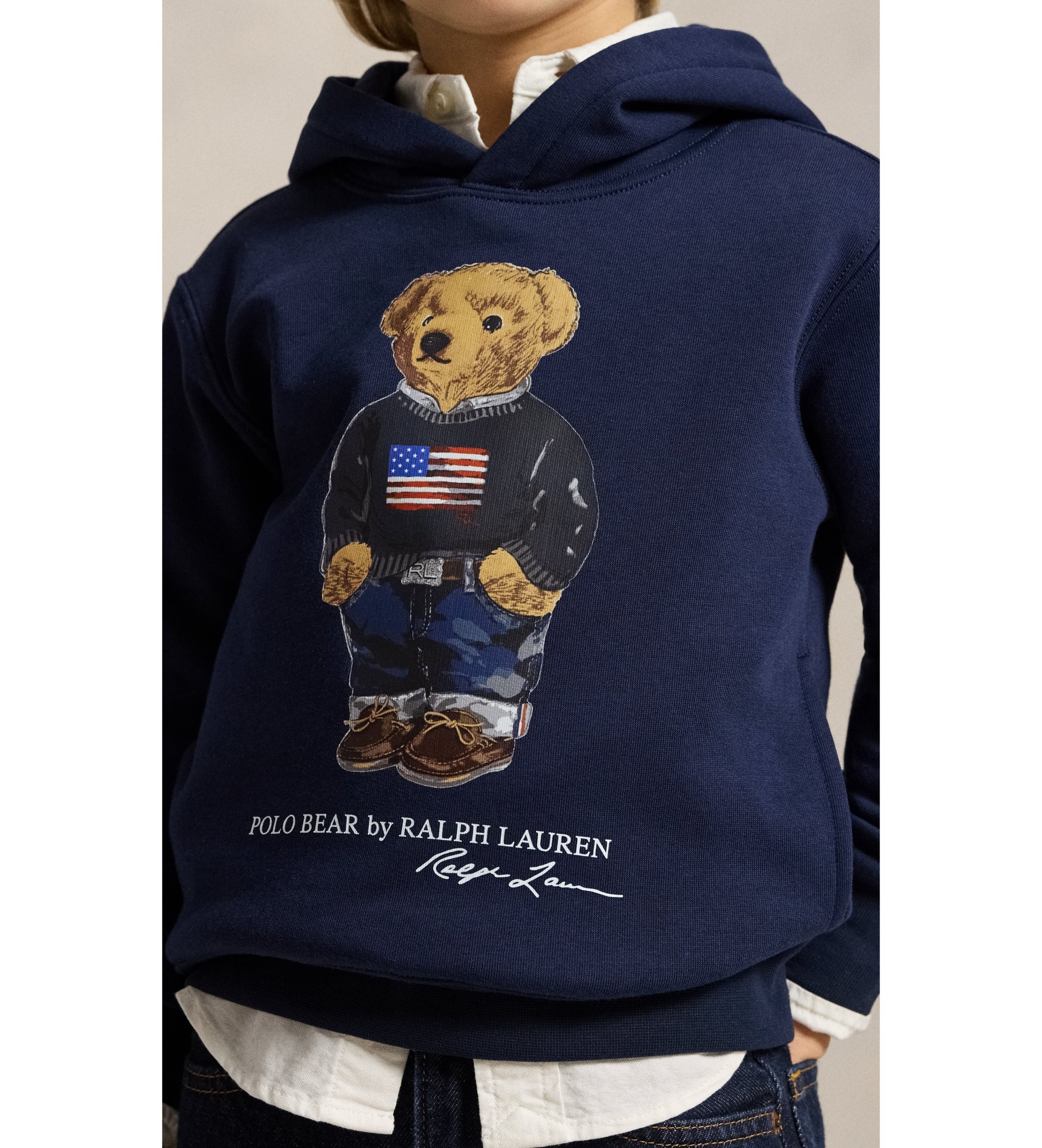 Un ícono que luce un ícono, nuestro característico Polo Bear viste el suéter con la bandera estadounidense de Ralph Lauren en esta sudadera con capucha de mezcla de algodón.