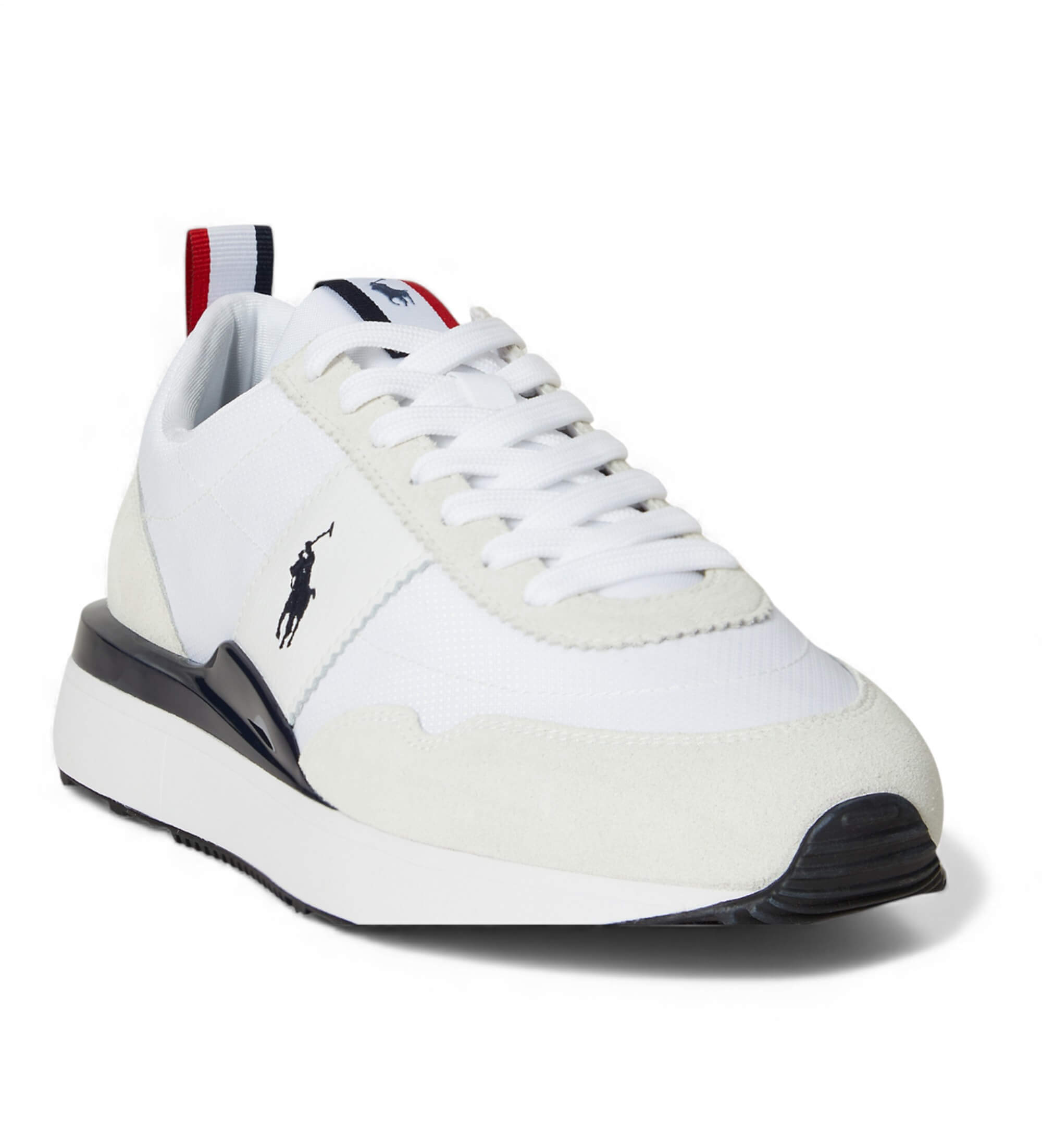 Las Train 89 modernizan las clásicas zapatillas de running de Polo, inspiradas en los años 70, con elementos de diseño contemporáneos como una plantilla de TPU en el talón y una suela robusta. Esta versión de ante y oxford presenta detalles de cuero abatanado a tono, ribete de grosgrain a rayas y el icónico pony de Ralph Lauren.
