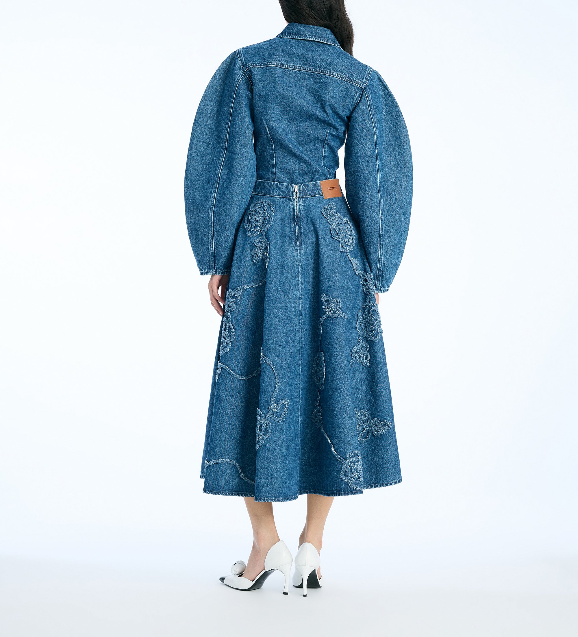 Falda Berty en azul de ROTATE, diseñada para un look moderno y elegante. La prenda destaca por su silueta femenina y versátil, ideal para combinar con tops o blusas de la colección.