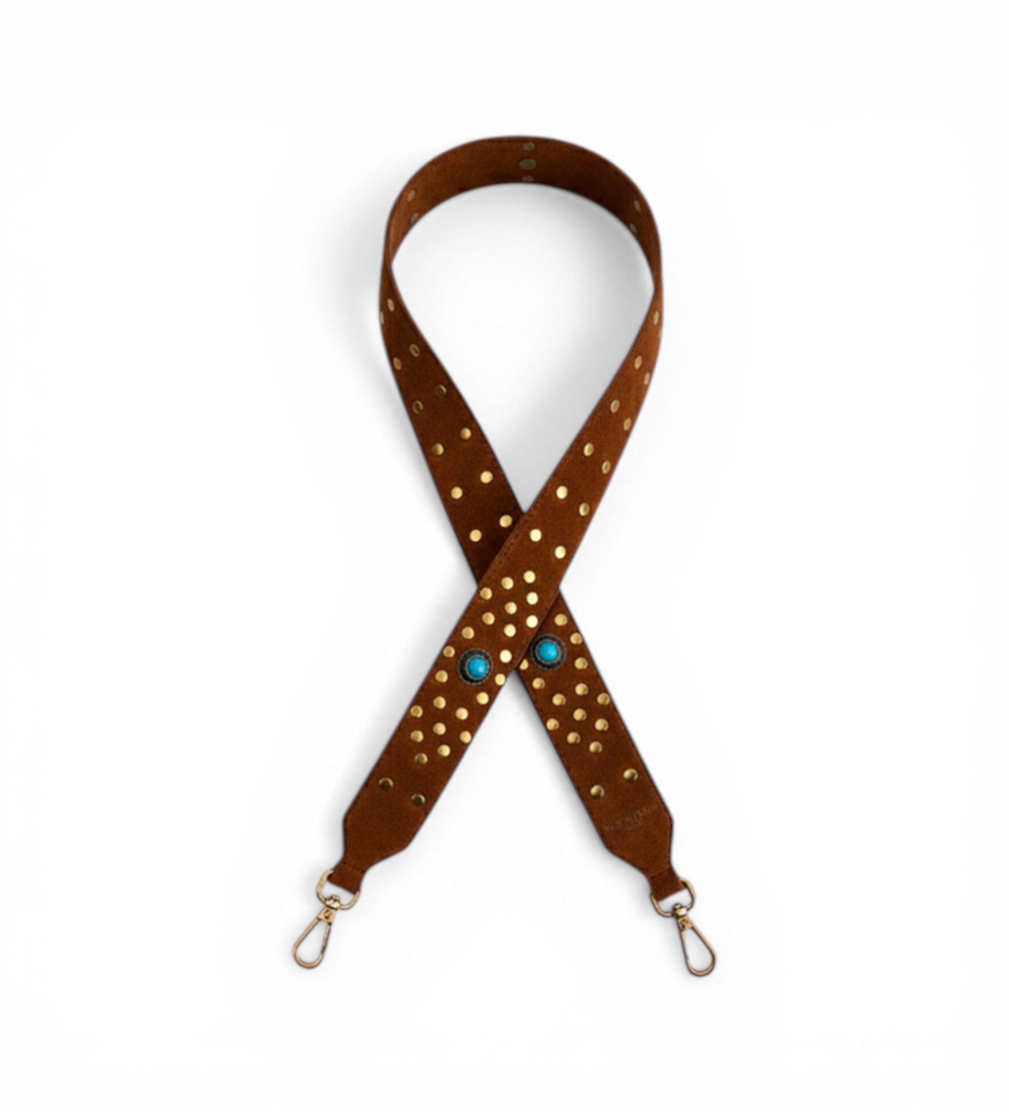 Correa de hombro de ante con logotipo estampado y tachuelas de estilo étnico, para un toque distintivo y refinado.
