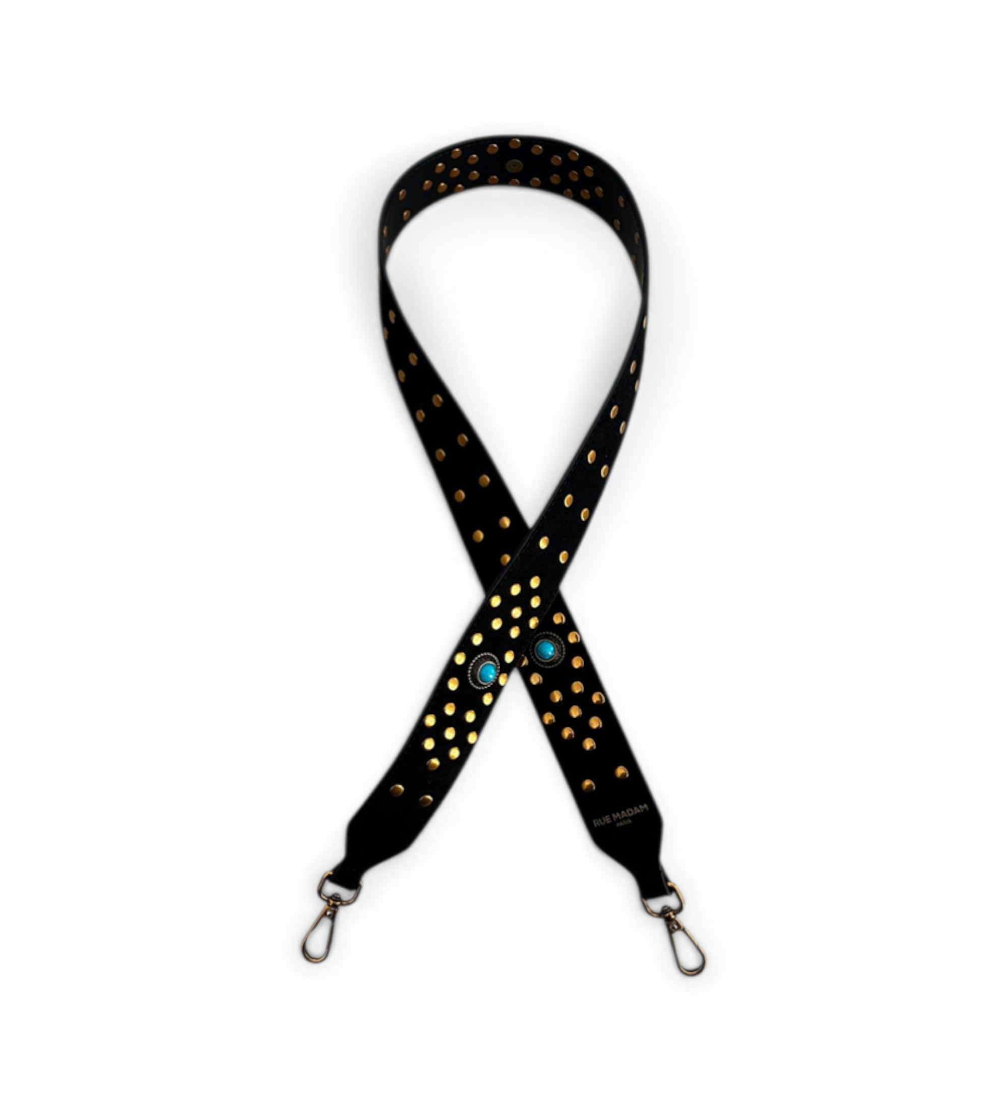 Correa de hombro de ante con logotipo estampado y tachuelas de estilo étnico, para un toque distintivo y refinado.