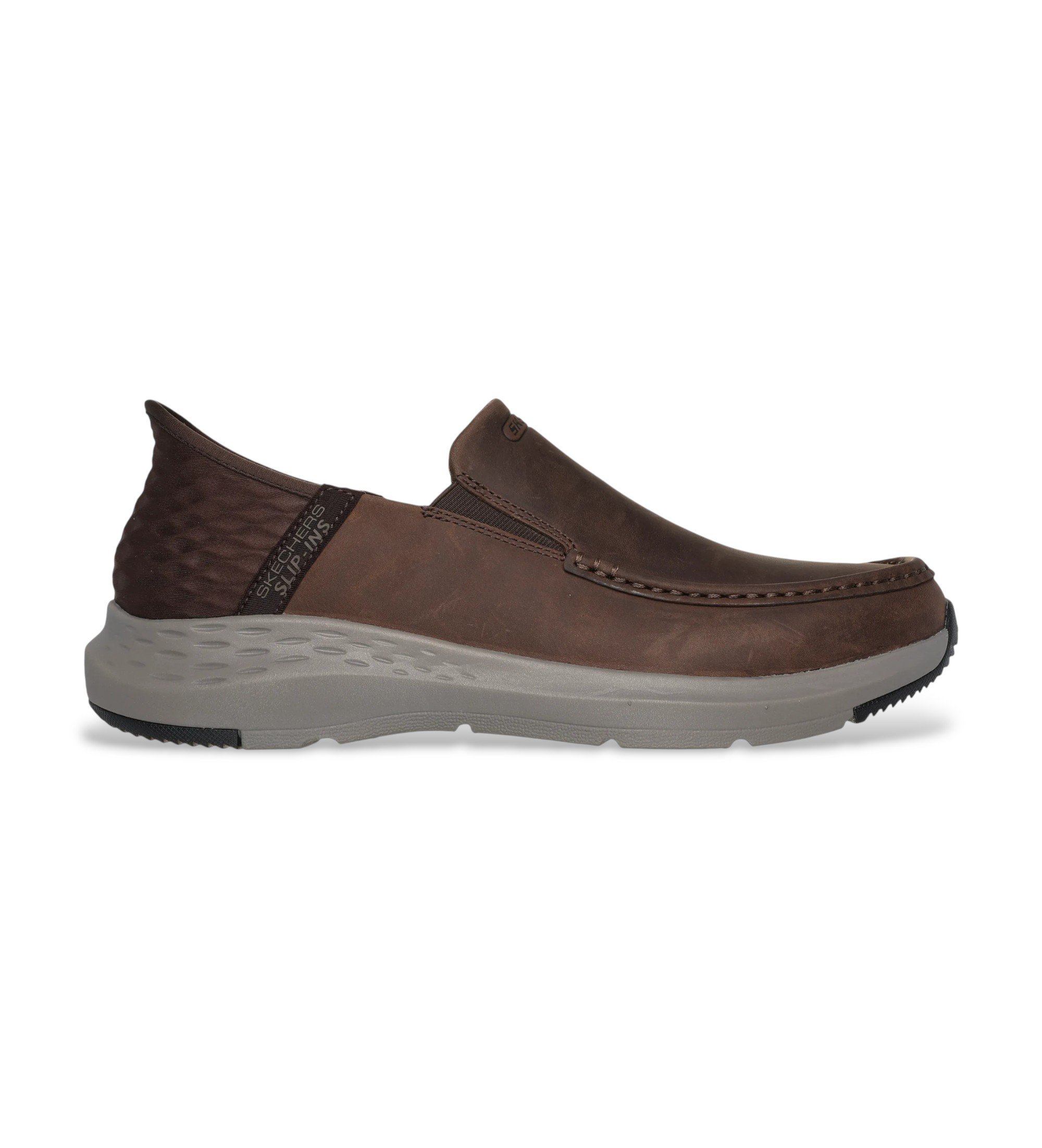 Disfruta del estilo clásico y la comodidad de Skechers Hands Free Slip-ins® Relaxed Fit®: Parson - Oswin. Diseñado con el sistema exclusivo Heel Pillow™, este modelo mocasín sin cordones cuenta con un panel moldeado Skechers Slip-ins® en el talón, una parte superior de piel, una plantilla Skechers Air-Cooled Memory Foam® y amortiguación Goga Mat Arch™ para mejorar el apoyo.