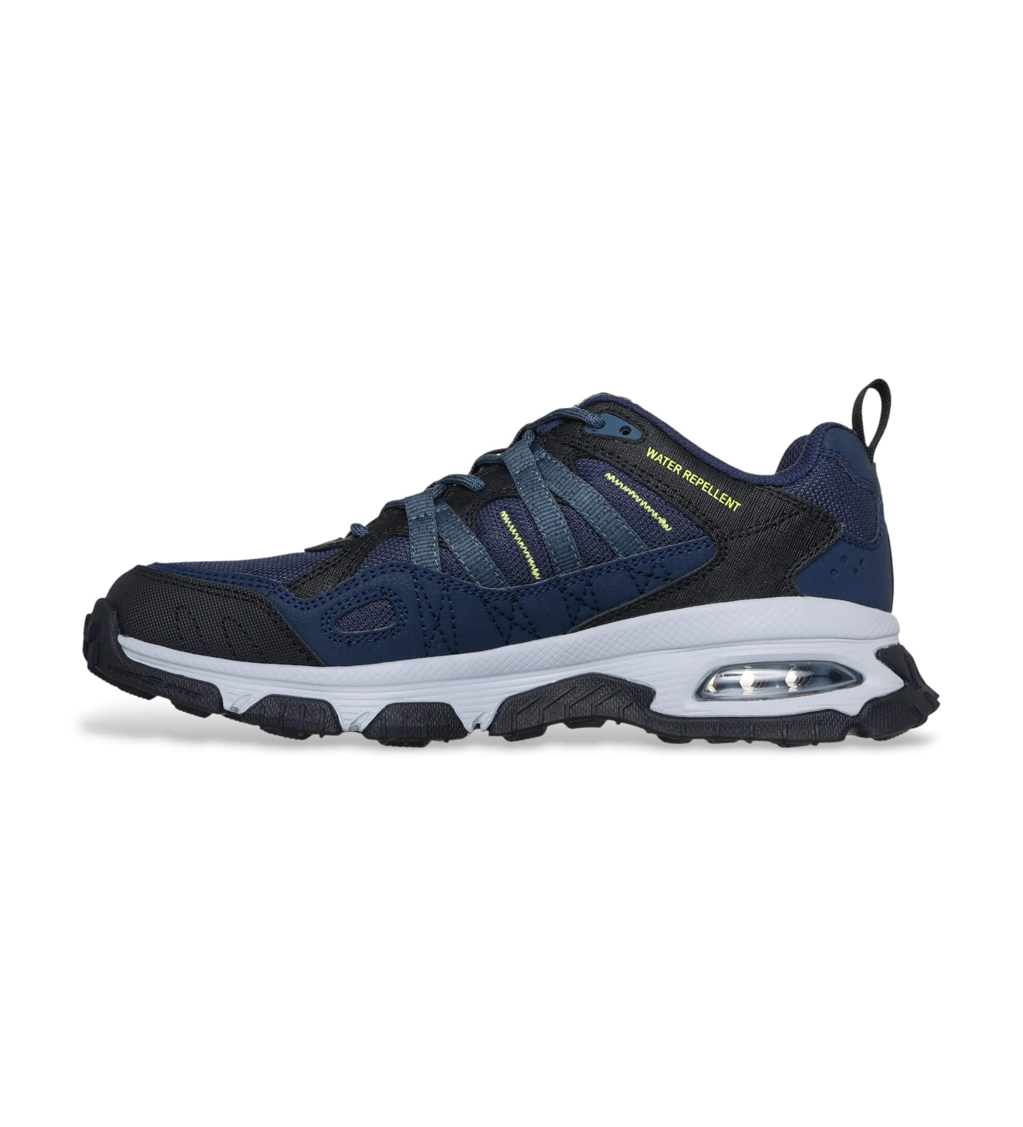 Vive la naturaleza a lo grande con Skechers Skech-Air® Envoy - Buyers Peak. Este modelo de trail para actividades al aire libre cuenta con una parte superior repelente al agua de piel y material sintético con cordones, la plantilla Skechers Air-Cooled Memory Foam™, una media suela con cámara de aire visible Skech-Air® y suela Goodyear® para mayor tracción.