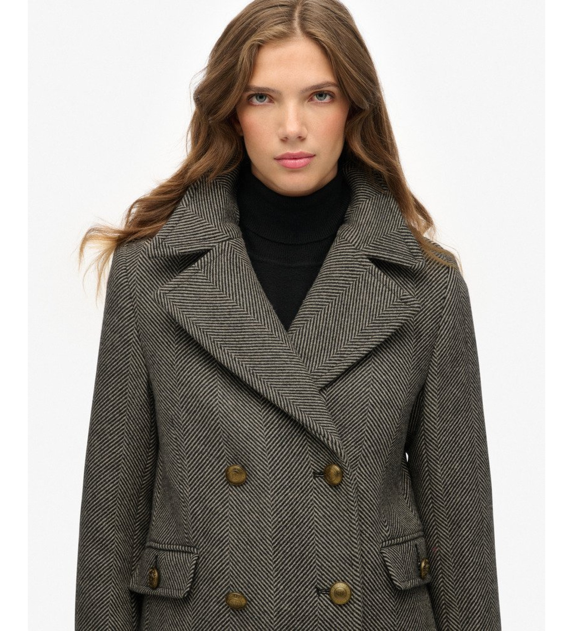 Corte ajustado: diseñado para ceñirse al cuerpo y lograr una silueta más elegante. Dos bolsillos exteriores dobles con cierre de botón y corte largo. Cierre de botones en toda la prenda, incluyendo los puños. Solapas en los hombros con una lengüeta metálica en la manga. Una opción impresionante para tu armario esta temporada. Nuestro abrigo cruzado de mezcla de lana crea una silueta imponente que realza cualquier atuendo. La chaqueta ha sido diseñada con esmero, inspirada en la indumentaria militar, y cuenta con detalles exquisitos que captan la atención, como la ornamentada botonadura. Esto solo aumenta la calidad y el estilo que la convertirán en una prenda imprescindible.