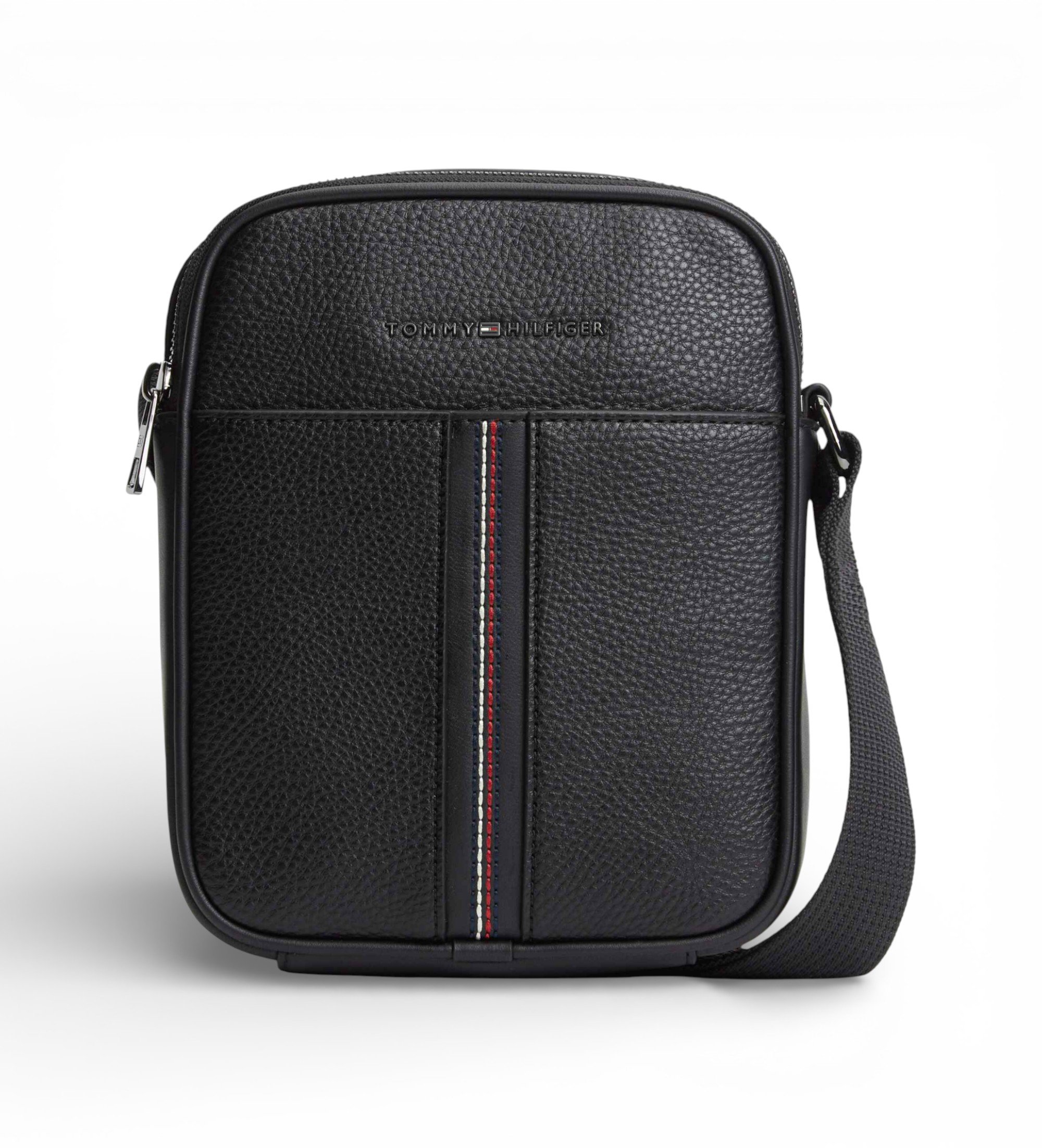 • Logo metálico de Tommy Hilfiger en la parte delantera