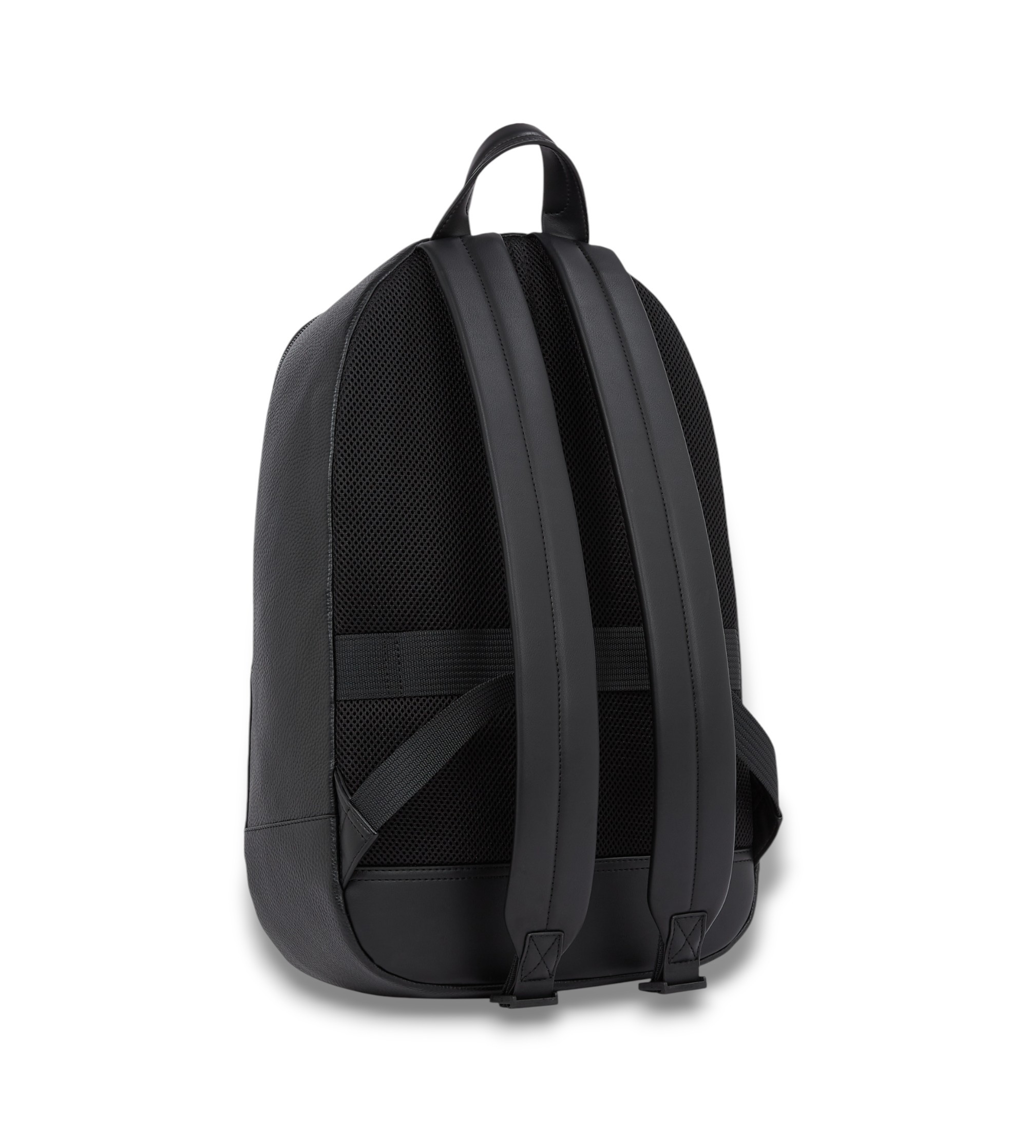 Mochila tipo domo de Tommy Hilfiger en negro con acabado de grano de guijarro. Fabricada en 90% poliuretano y 10% poliéster PES, combina estilo y funcionalidad. Cuenta con funda acolchada para portátil, espalda de malla, correas ajustables y cierre de doble cremallera. Perfecta para el día a día con varios compartimentos interiores para mantener todo organizado.