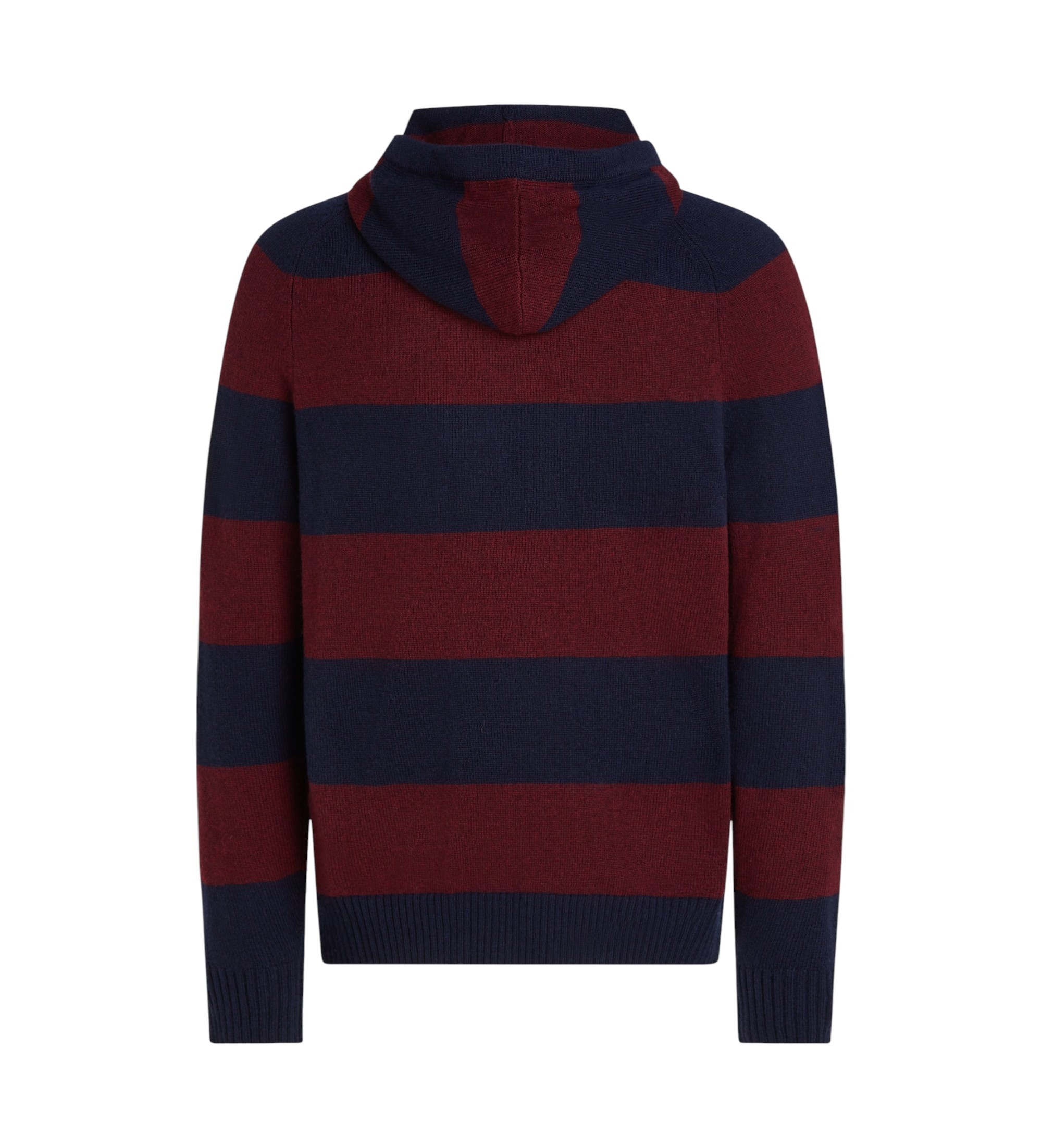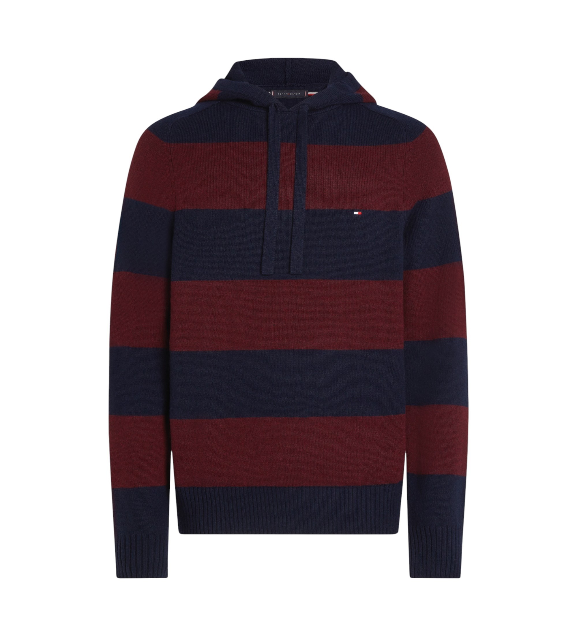 Descubre la sofisticada sudadera con capucha de Tommy Hilfiger, una pieza que combina elegancia y confort. Confeccionada al 100% en lana sostenible, esta sudadera para hombre presenta un diseño a rayas en tonos burdeos y negro, ideal para un estilo casual pero refinado. Su textura de punto añade un toque cálido y acogedor, mientras que los puños y el dobladillo de punto acanalado ofrecen un ajuste perfecto. Comodidad y moda se unen en este corte regular.