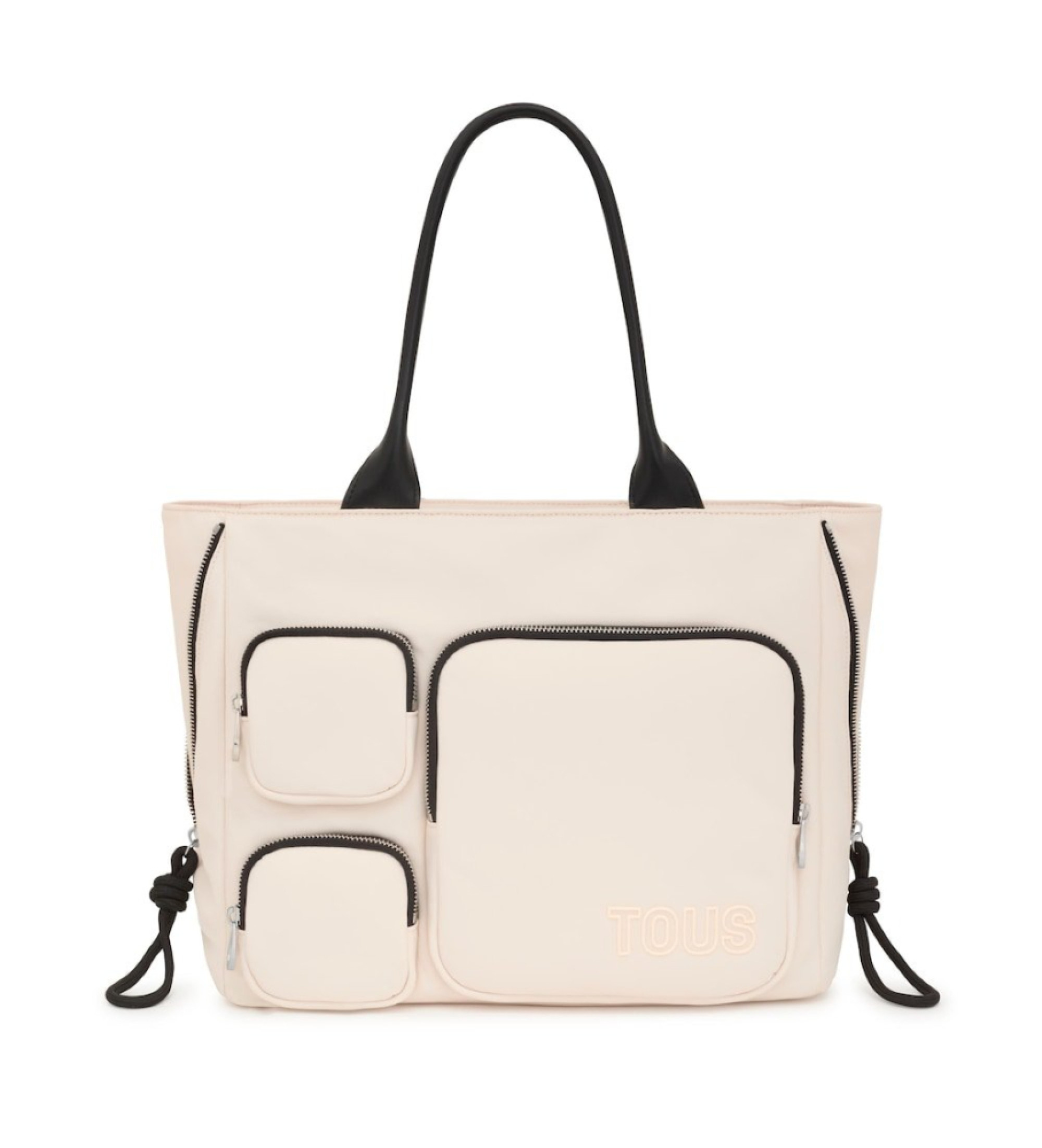 Bolso shopper grande TOUS Roomy de poliéster reciclado con detalles de poliuretano en color beige. Cierre de cremallera. Tres bolsillos exteriores con cierre de cremallera y un bolsillo interior abierto. Asas fijas de hombro. Medidas (alto x ancho x fondo): 18 x 42 x 16,5 cm.