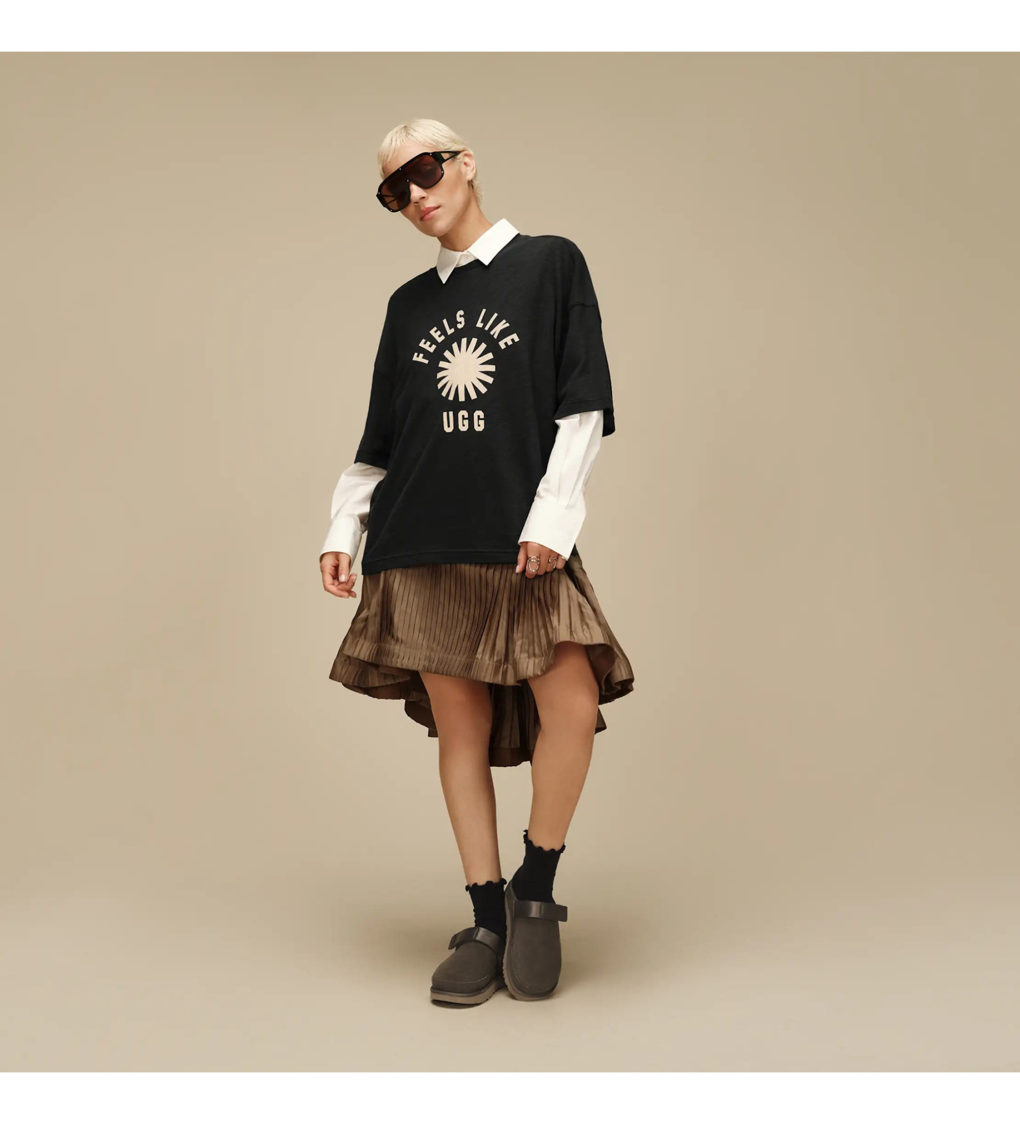 Fabricados en ante aterciopelado, estos versátiles zuecos de plataforma destacan por tener un estilo que combina con todo. Si buscas un calzado cómodo, los Goldenstar son para ti. El diseño giratorio de la tira del talón hace de este un modelo 2 en 1: llévala como tira del talón o sobre la parte de arriba para quitártelos y ponértelos fácilmente. Mientras que la suela ultraligera proporciona amortiguación y firmeza durante todo el día. La suela de este producto es una suela Treadlite by UGG™, o bien una suela de goma EVA, un compuesto responsable con espuma de caña de azúcar que nos permite reducir la dependencia de los combustibles fósiles sustituyendo el etileno derivado del petróleo.