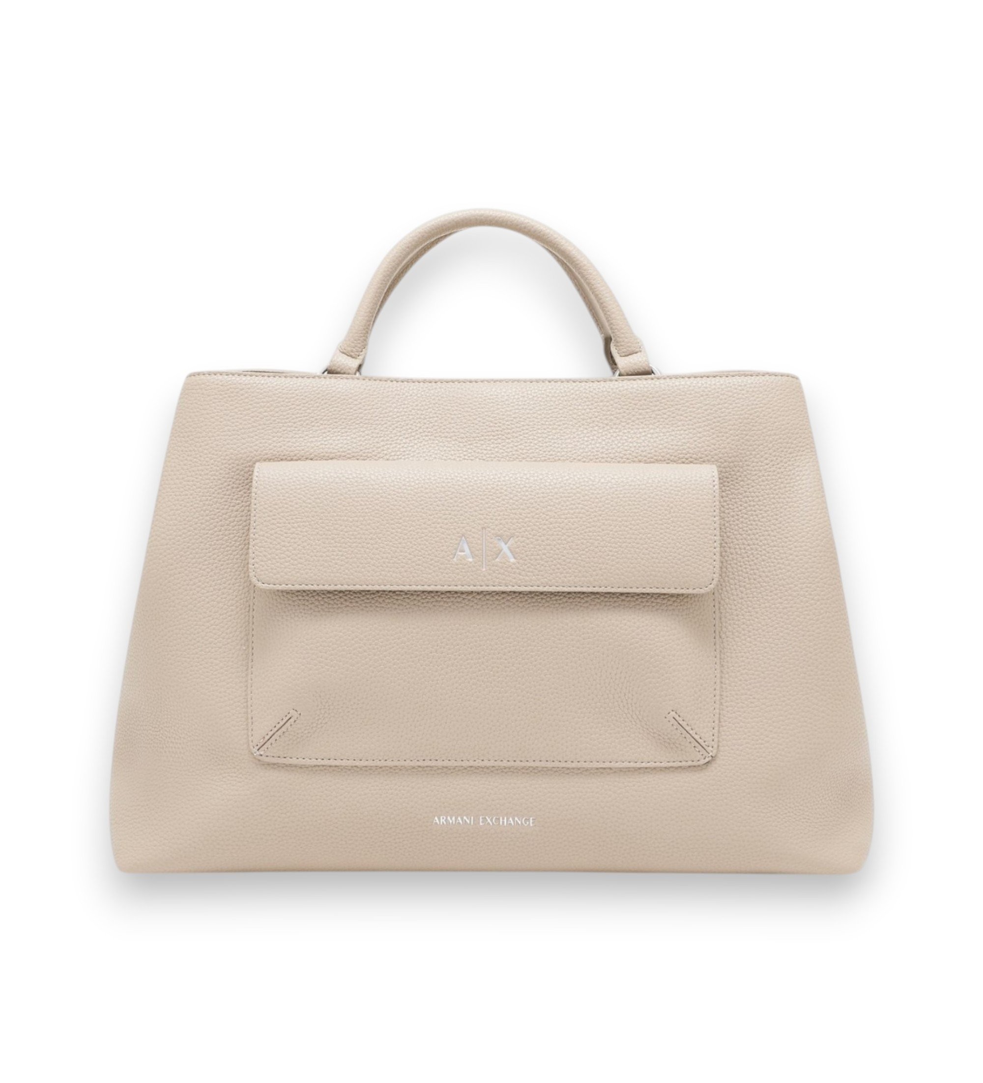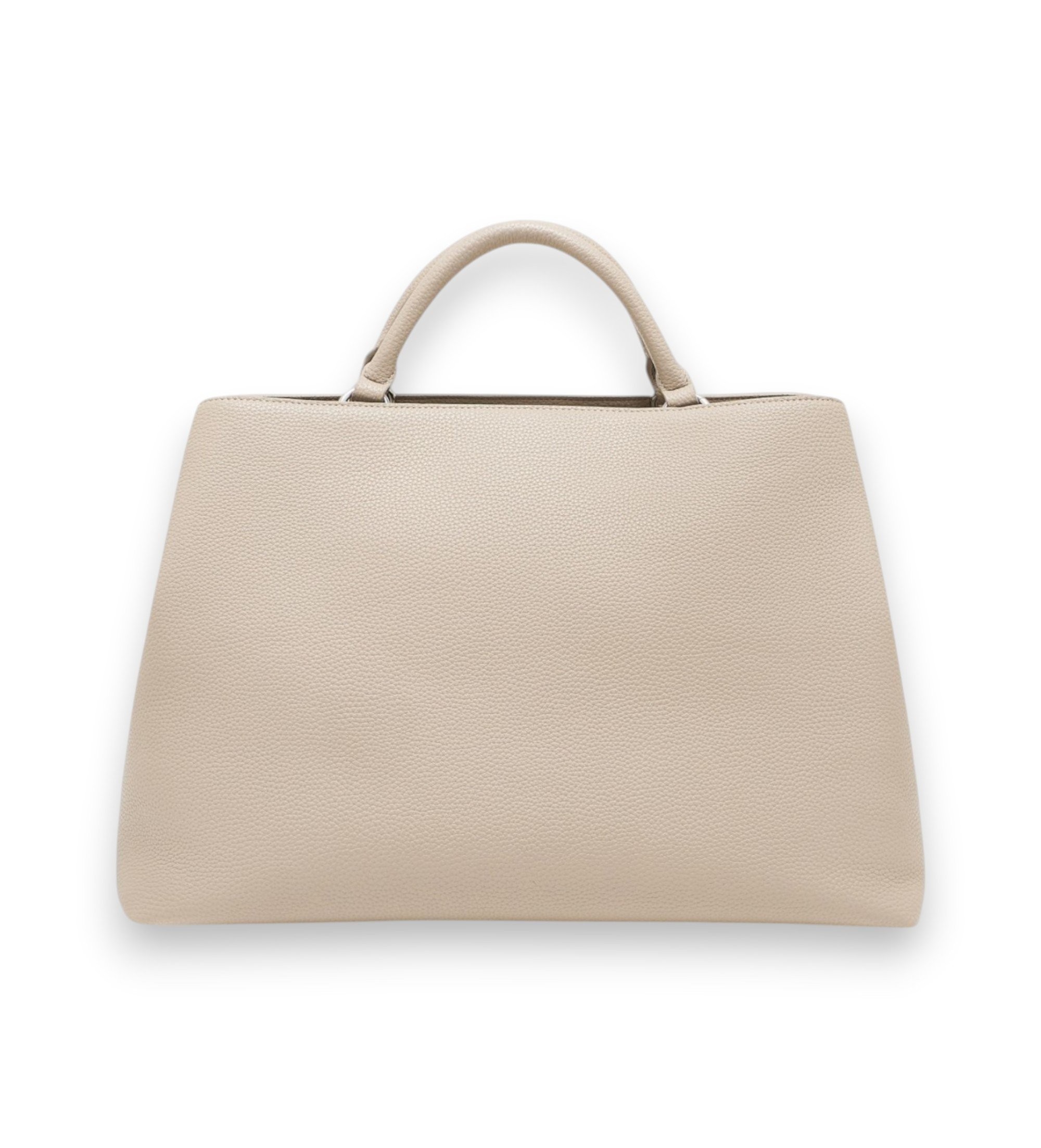 Sac fourre-tout pour femme de couleur beige, conçu pour celles qui recherchent un mélange d'élégance et de fonctionnalité au quotidien. Réalisé en 100 % polyester, il est doté d'une généreuse poche frontale avec fermeture à bouton-pression et d'un compartiment principal qui se ferme par une longue fermeture à glissière en métal avec cadre en simili-cuir. À l'intérieur, deux poches doublées et une petite poche zippée permettent de tout organiser. Les poignées tubulaires, maintenues par des anneaux métalliques cousus à l'intérieur, assurent la solidité du sac, qui est également muni d'une bandoulière amovible avec un logo assorti à la couleur du sac.