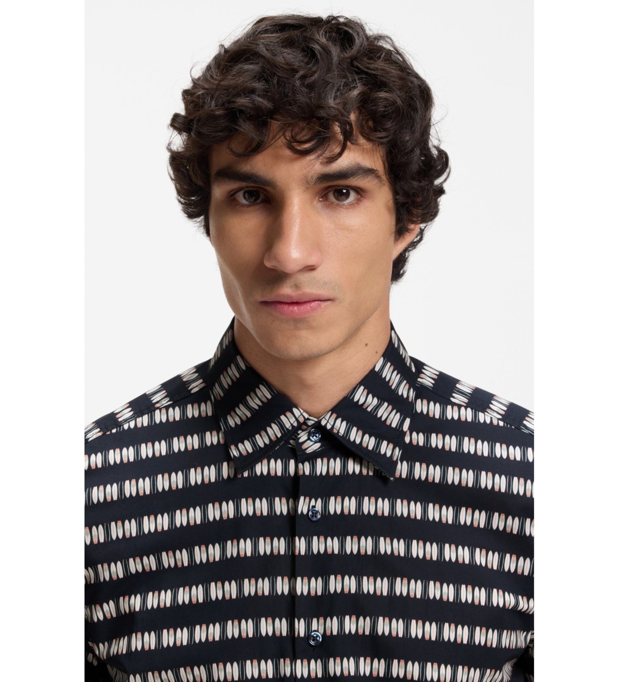 BOSS Chemise Coupe régulière popeline imprimée marine