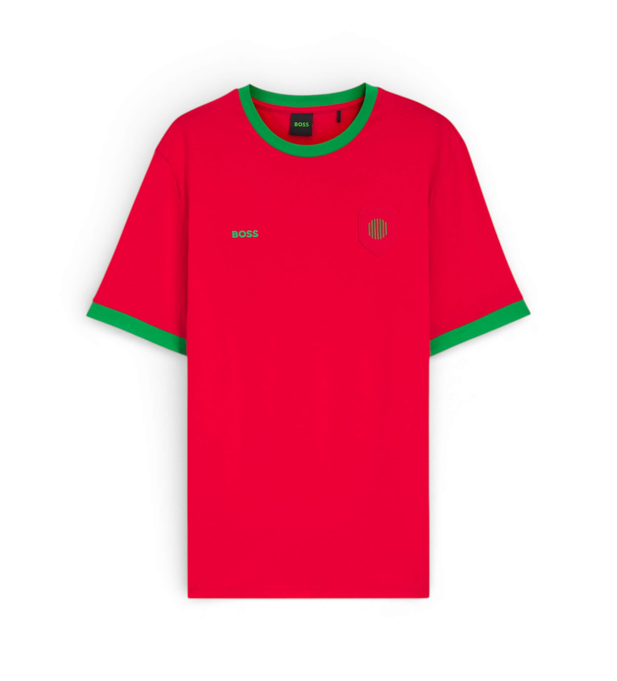 Confectionné en coton doux et extensible, ce T-shirt BOSS Menswear est orné des couleurs originales du drapeau national pour un look sportif. Coupe régulière confortable. Col ras du cou contrasté. Cet article fait partie d'une collection capsule conçue pour célébrer l'esprit d'équipe du football, et comporte un insigne de drapeau national cousu.