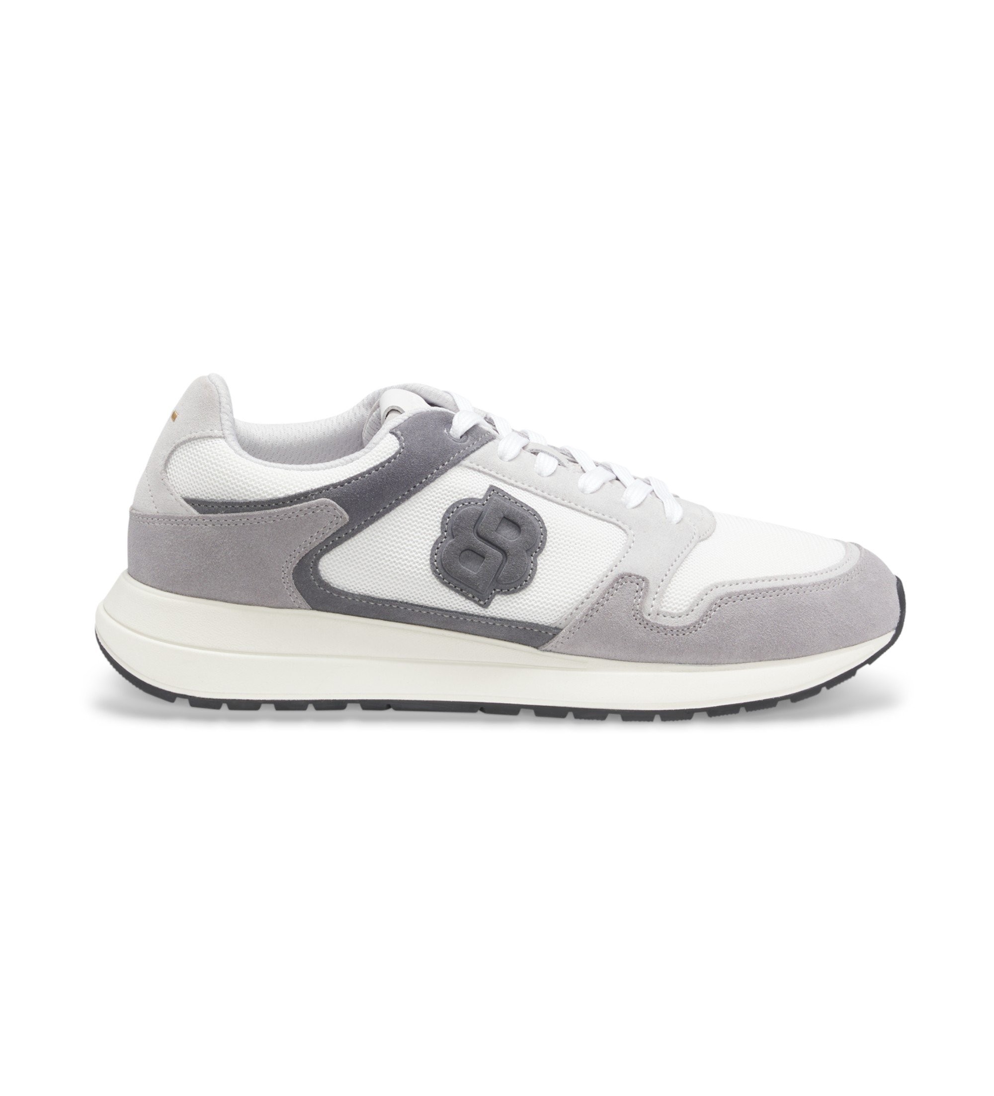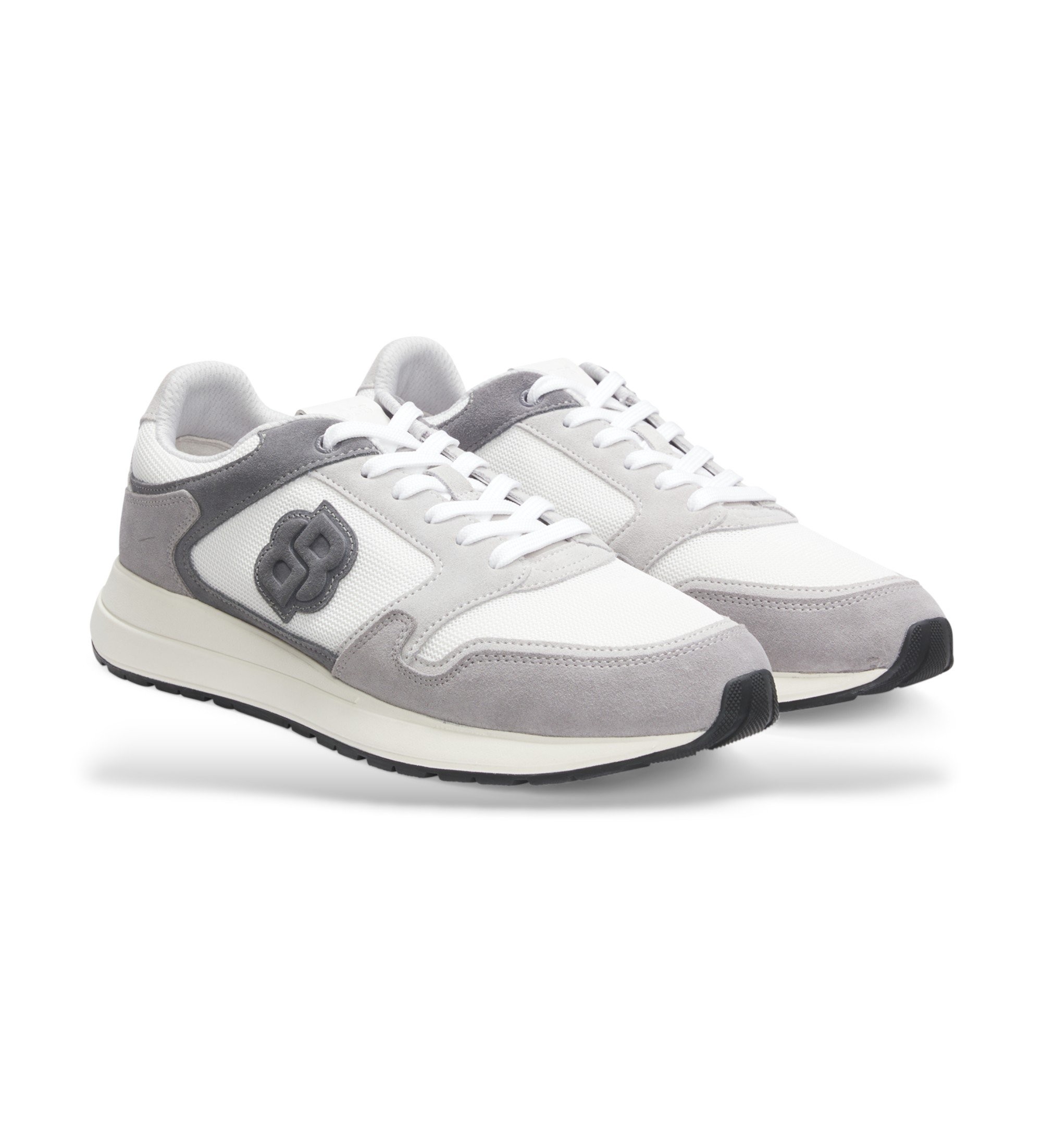 Ces baskets BOSS Menswear en daim souple associé à une maille respirante offrent un style raffiné grâce au monogramme Double B. Semelle en caoutchouc EVA pour un meilleur maintien.