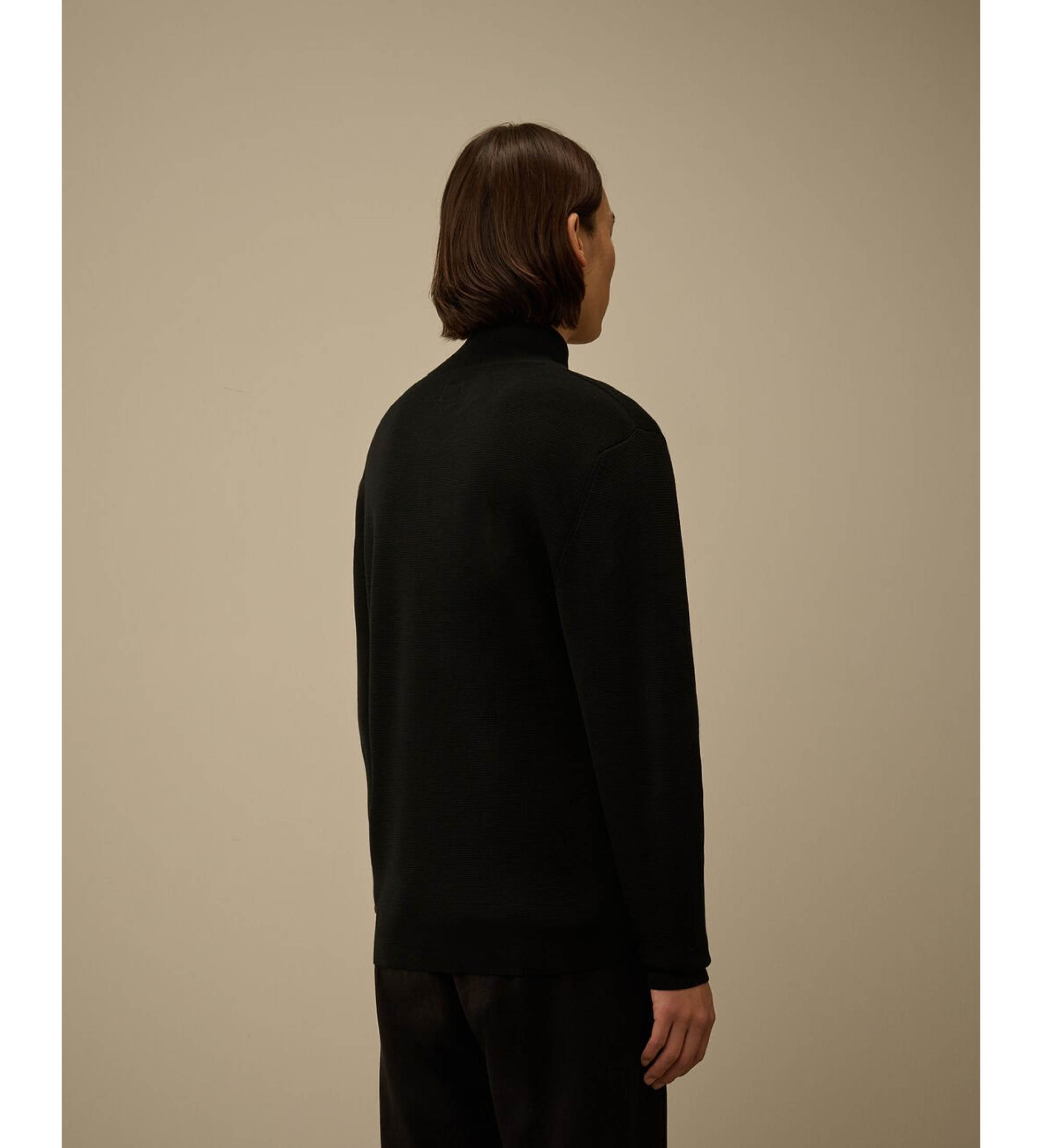 Cardigan entièrement zippé fabriqué en Re-Wool, un mélange de laine mérinos extra-fine certifiée Responsible Wool Standard (RWS) et de polyester recyclé certifié Global Recycling Standard (GRS). Le tissu présente un col côtelé et la lentille emblématique de CP Company. Finition avec poignets et ourlets côtelés. 12 gauge. Coupe régulière.