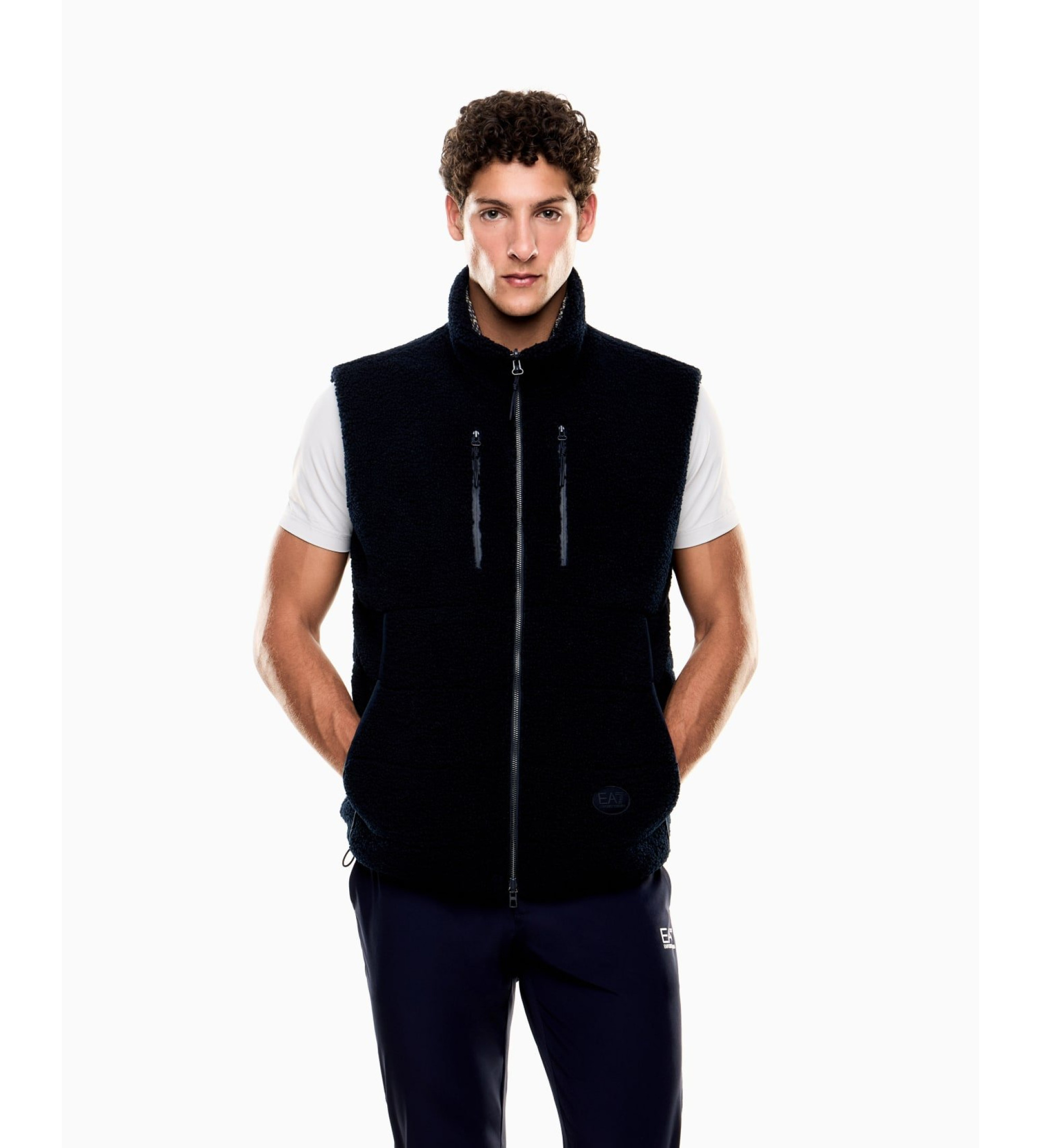 Gilet réversible avec col montant et fermeture éclair pratique. Le modèle combine le côté en tissu effet teddy et le côté en nylon dans un imprimé à carreaux avec un effet dégradé, et convient à une variété d'occasions. La personnalisation du logo EA7 complète les deux côtés du vêtement avec distinction. Classique, élégante et minimaliste : la sélection Golf Club offre des vêtements en tissus confortables et respirants, proposés dans une palette neutre et extrêmement polyvalente, assortie aux modèles pour les matchs. Des pièces sophistiquées, parfaites pour un déjeuner ou un apéritif au club après une journée sur le green.
