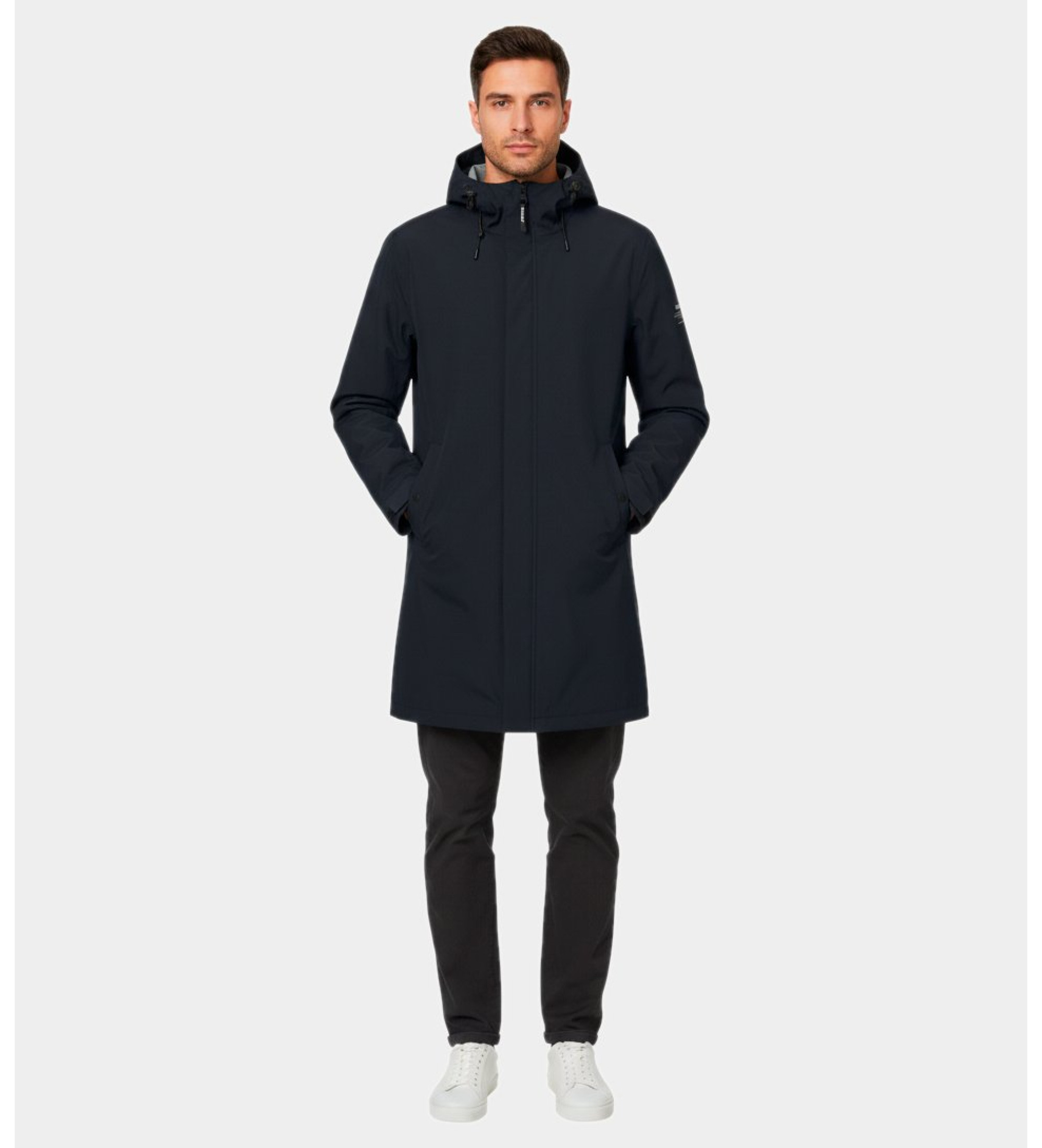 Le manteau Neve est un vêtement contemporain qui reflète un style respectueux de l'environnement. Conçu pour l'homme moderne, il est fabriqué à partir d'un tissu principal composé à 100 % de polyester recyclé à partir de bouteilles en PET et de déchets textiles. Le vêtement suit l'approche de l'économie circulaire, évitant ainsi que ces matériaux ne finissent dans les décharges. Également doublé de polyester 100 % recyclé, il offre une solution durable pour l'hiver.