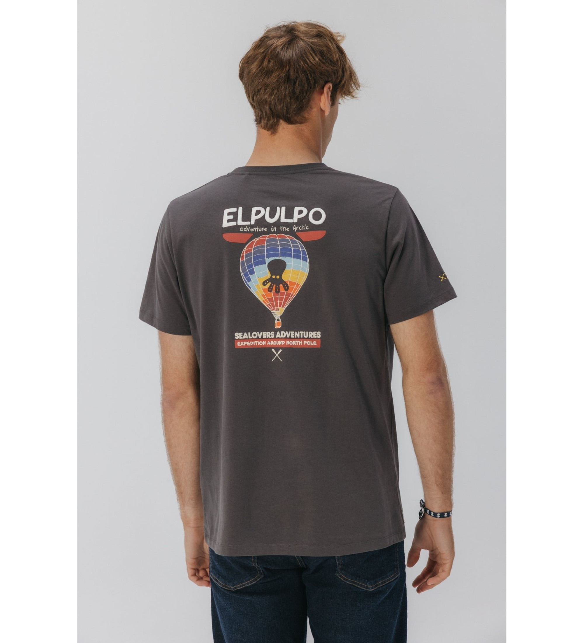 T-shirt à manches courtes anthracite, en coton biologique. Un basique confortable et durable avec une touche de modernité grâce à son imprimé au dos.