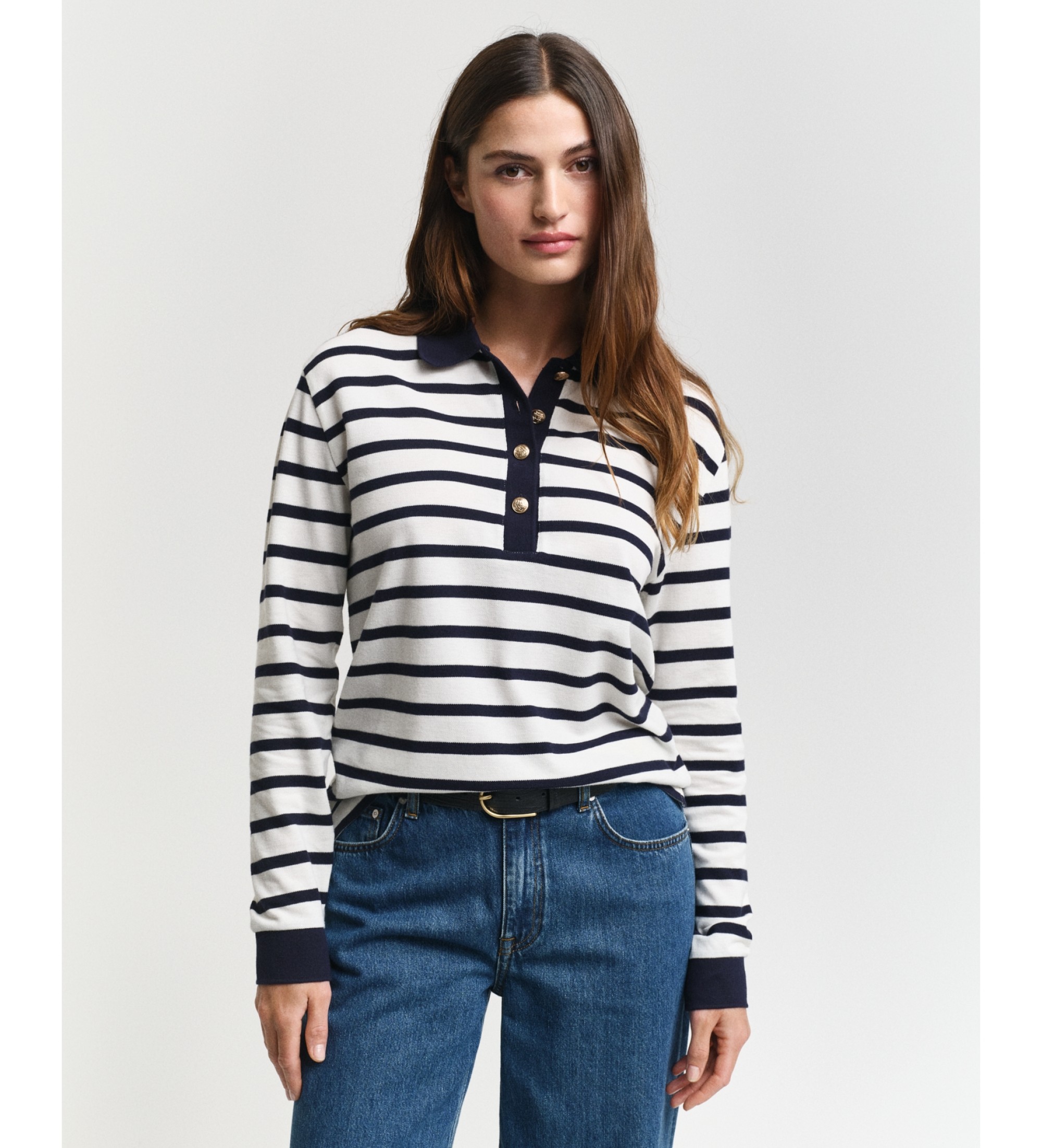 Ce polo GANT à manches longues est confectionné en piqué doux 100 % coton. Il présente un imprimé à rayures bretonnes, un col polo côtelé, des ?illets dorés et un subtil logo GANT brodé sur la manche. Ce vêtement a été conçu dans une coupe ample, mais si vous préférez une coupe plus fine, nous vous recommandons de commander une taille en dessous. En choisissant des produits en coton, vous soutenez l'investissement de GANT dans l'initiative Better Cotton. Ce produit a été obtenu à l'aide d'un système d'équilibre de masse et peut donc ne pas contenir de Better Cotton. Pour en savoir plus, consultez le site bettercotton.org/massbalance.