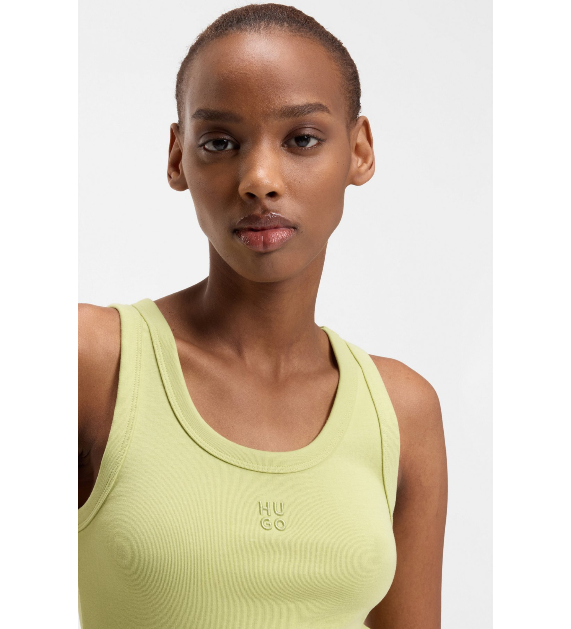 Ce T-shirt sans manches à la coupe ajustée et à la structure finement côtelée de HUGO Women est un must-have polyvalent. Logo brodé. Coton extensible.