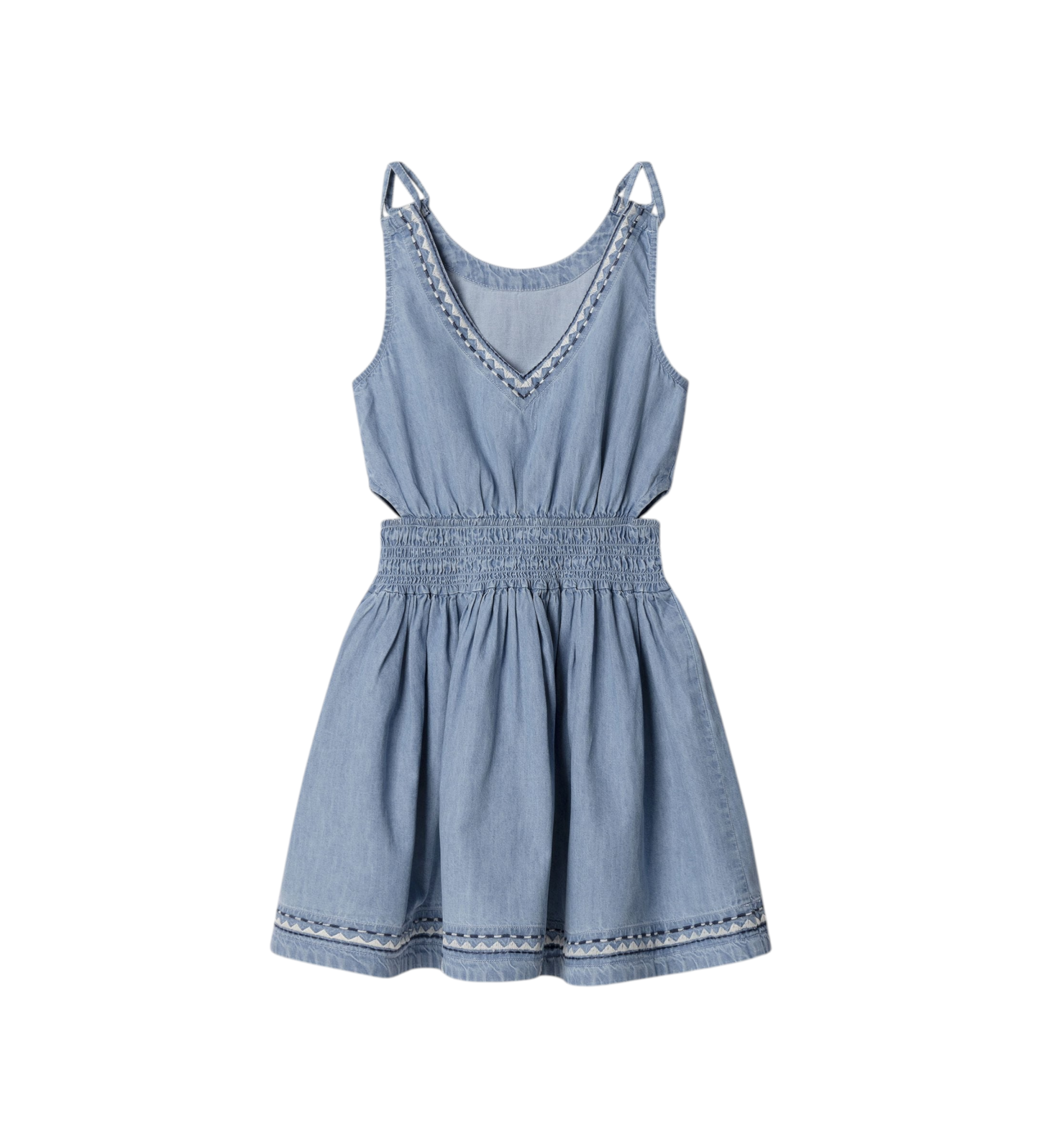 Découvrez cette mini robe en denim souple, un modèle qui allie la polyvalence du denim à des détails féminins et sophistiqués. Le décolleté en V au dos, les broderies décoratives à l'encolure et à l'ourlet, et les fentes latérales à la taille créent un look unique et flatteur. Parfaite pour les occasions spéciales en journée ou les looks décontractés avec une touche distinctive, cette robe en denim est une pièce polyvalente qui a de la personnalité.