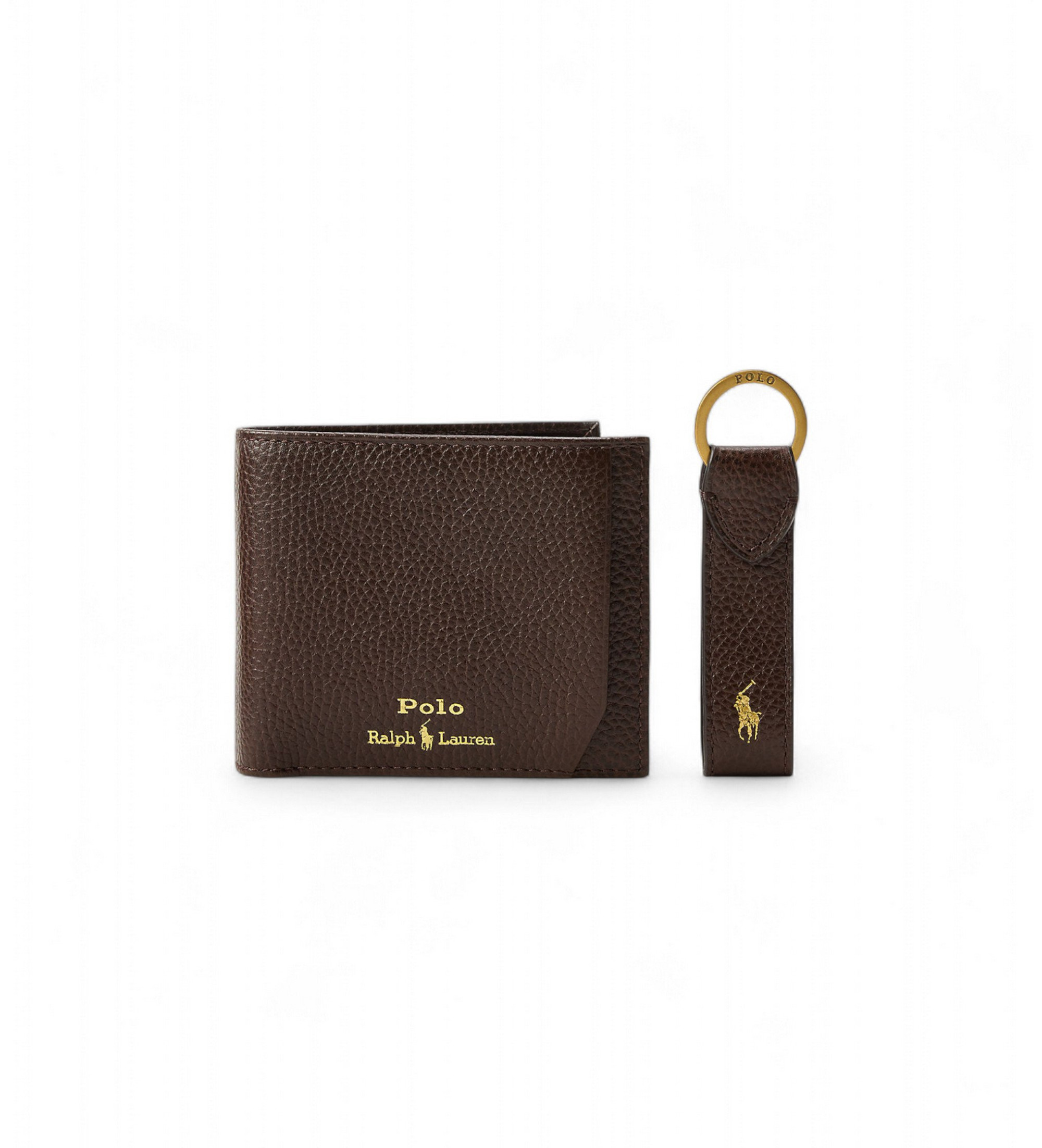 Ce coffret comprend un portefeuille polyvalent avec un porte-cartes amovible, vous permettant d'utiliser les deux ensemble ou séparément. Un porte-clés est également inclus. Chaque pièce est fabriquée en cuir grainé et est délicatement embossée avec notre logo emblématique ou notre cheval emblématique.