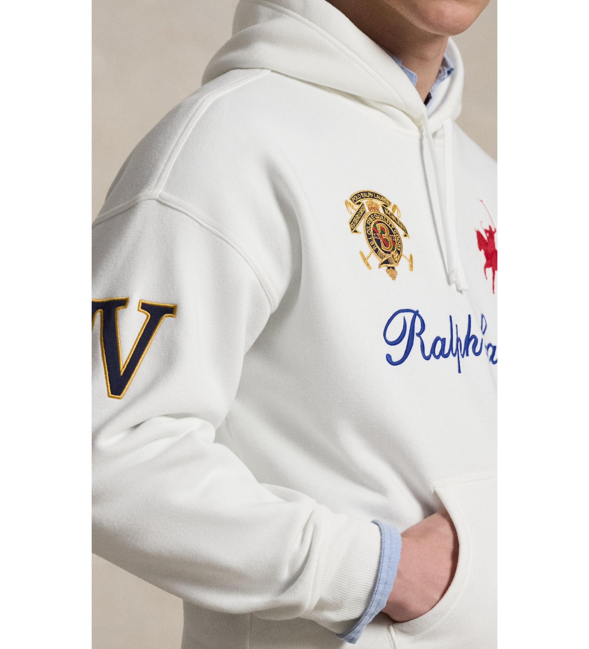 Ce sweat à capuche en coton mélangé est fabriqué en polaire épaisse et veloutée pour un toucher extra-doux. Il est orné de broderies graphiques exclusives, dont notre logo emblématique Double-Pony.