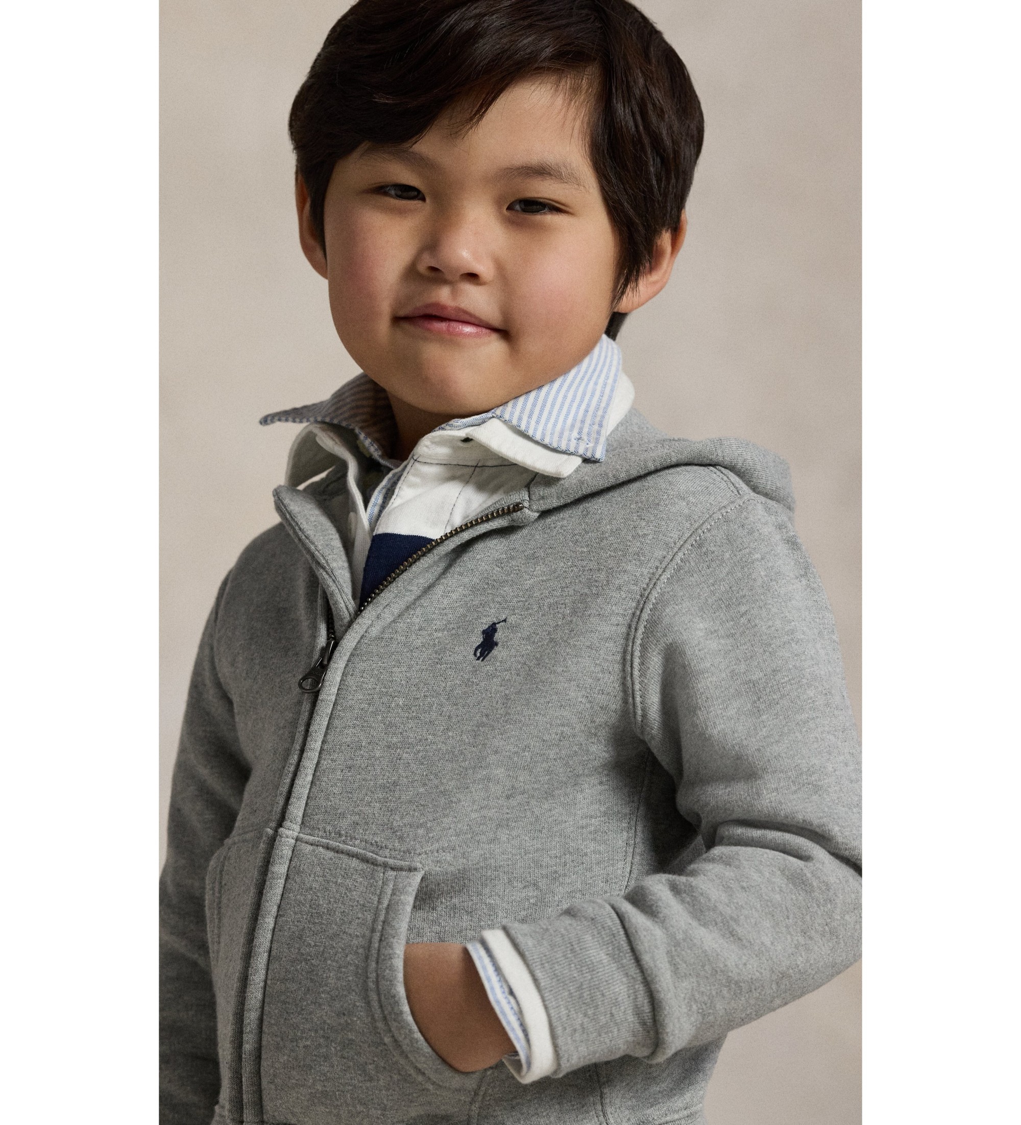 Ce sweat-shirt à capuche et à fermeture éclair intégrale est fabriqué dans un mélange de coton doux et orné de notre poney brodé emblématique.