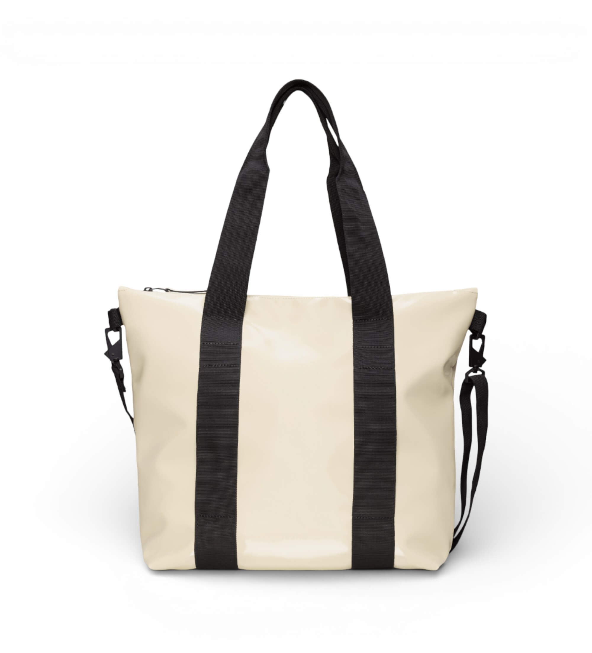 Le Tote Bag Mini est un sac fourre-tout imperméable, parfait pour le shopping, les trajets quotidiens ou le bureau. Il se distingue par son aspect fonctionnel et ses détails pratiques. Il est doté d'une fermeture éclair doublée sur toute la longueur et d'un compartiment principal spacieux pour les articles de tous les jours. Conçu pour transporter l'essentiel, le Tote Bag Mini offre plusieurs options : le porter à l'épaule grâce à sa bandoulière amovible ou utiliser les longues sangles pour les mains et les épaules. Les poignées sont munies de boucles d'attache pour les petits objets tels que les clés. Le Tote Bag Mini est fabriqué dans le tissu PU signature de Rains, conçu pour être résistant, durable et d'une finition lisse.