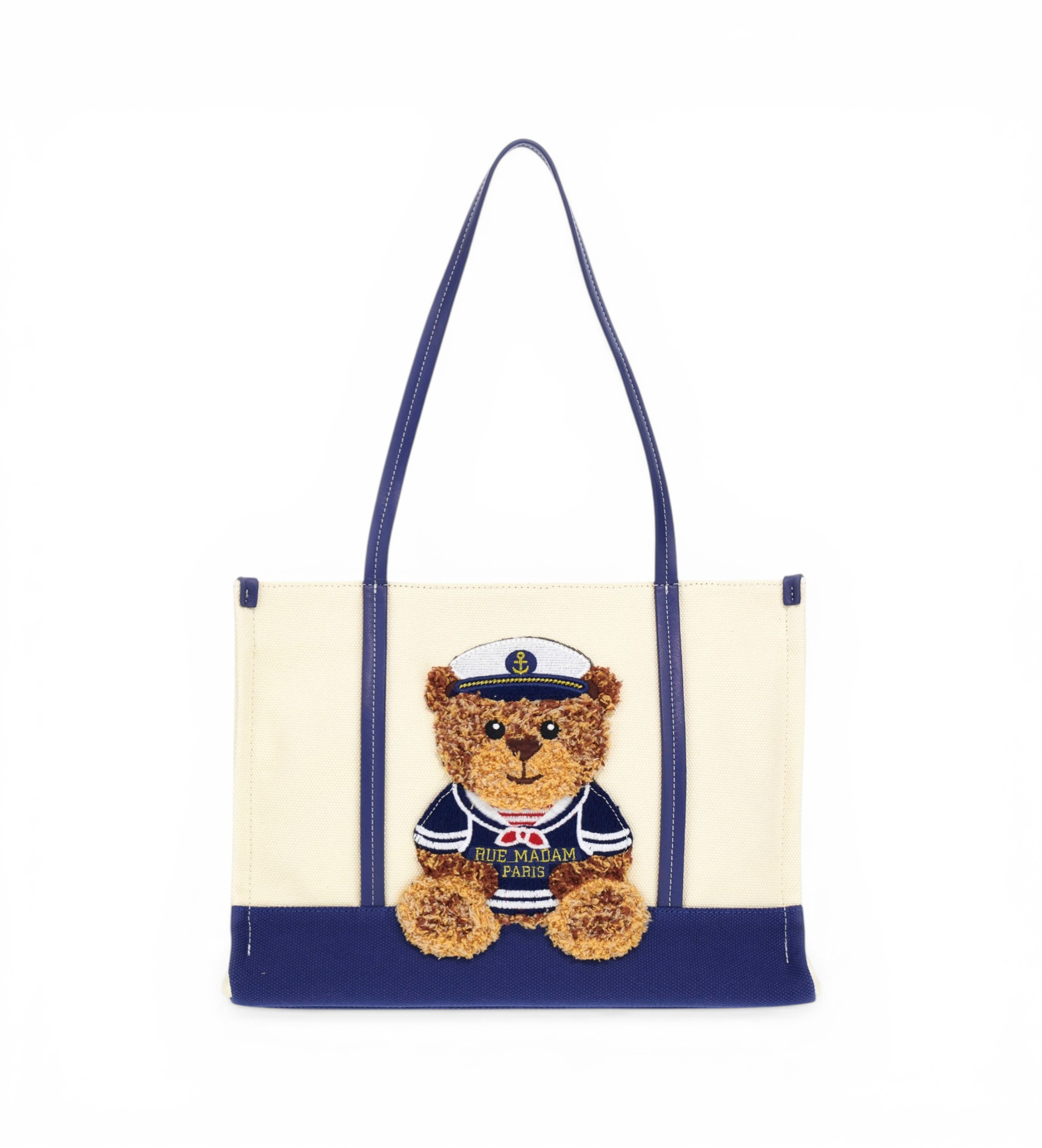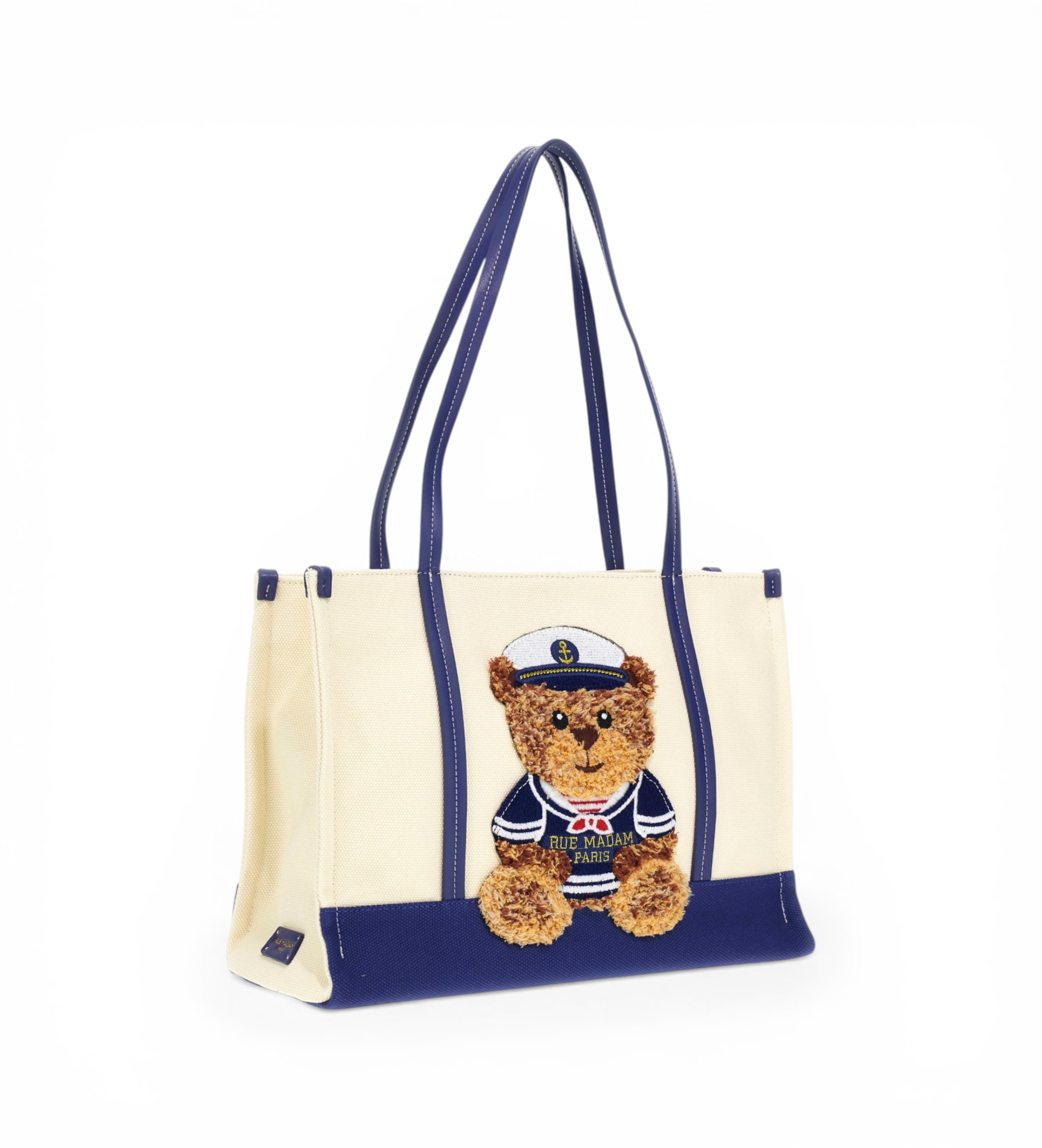 Un sac de shopping en toile souple au design amusant et contemporain, orné de la nouvelle broderie en peluche de l'ourson Sailor Marvin pour une touche originale et attachante. La base contrastée, les poignées et les détails en fausse fourrure rehaussent élégamment la structure. Fermeture à glissière et intérieur doublé de coton avec poche, idéal pour une organisation pratique au quotidien. Dimensions : 36 x 27 x 15 cm (L x H x L).
