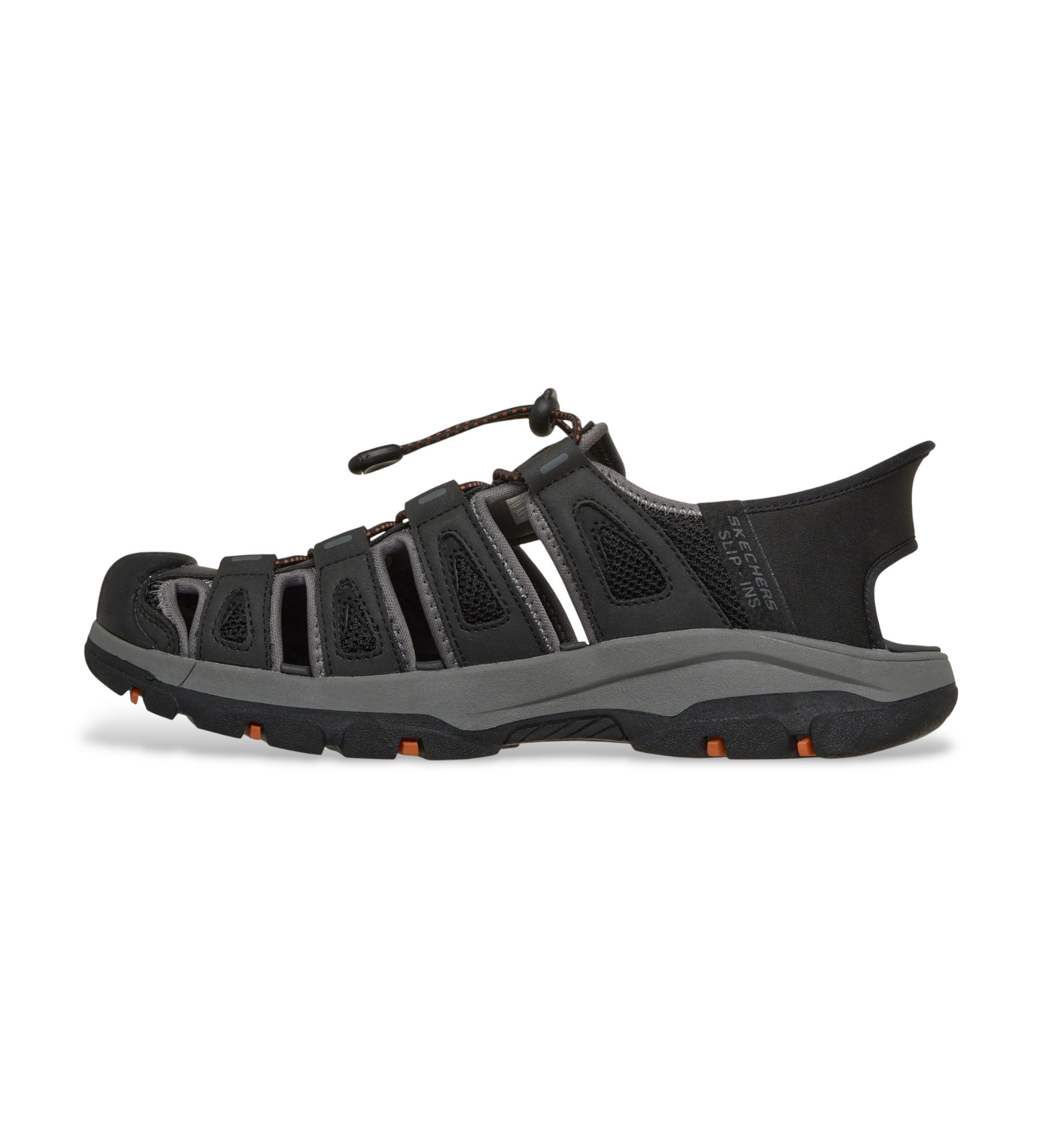 Style décontracté et confort se combinent dans les Skechers Hands Free Slip-Ins® Relaxed Fit™ : Tresmen - Norvick. Conçue avec notre technologie Heel Pillow™, cette sandale de pêcheur présente une tige synthétique avec un laçage bungee à l'avant, une talonnette à l'arrière et une assise plantaire matelassée confortable.
