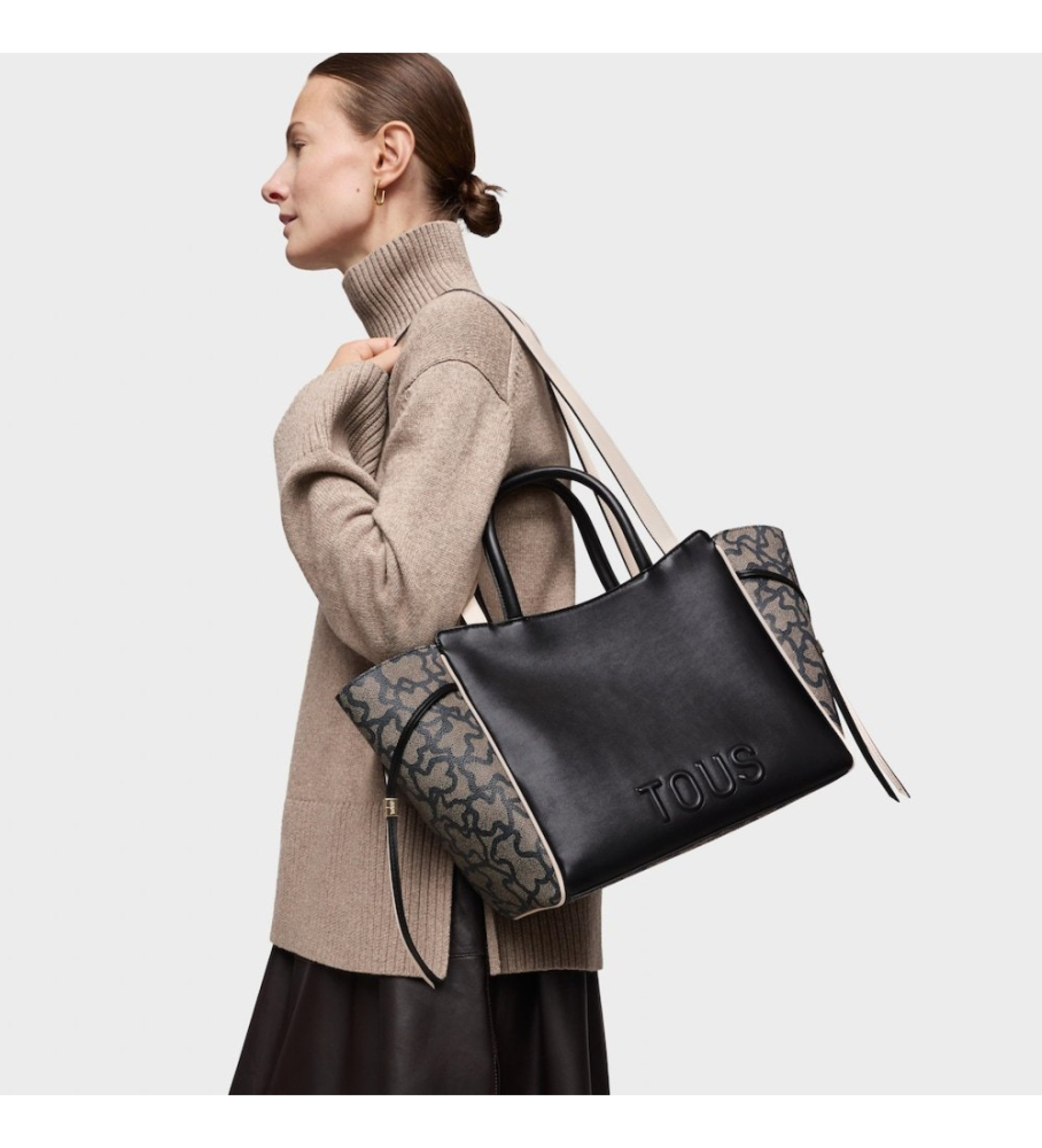 Sac de ville moyen Kaos Icon en polyuréthane et toile en noir. Fermeture à glissière. Poche intérieure zippée. Poignées fixes à l'épaule et à la main. Dimensions (hauteur x largeur x profondeur) : 27 x 47 x 16 cm.