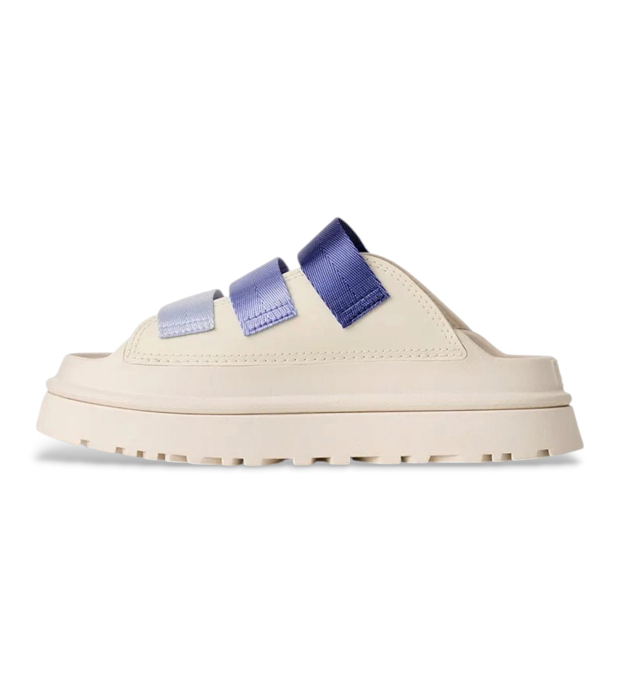 Osez briller. Les GoldenGlow sont des sandales au caractère joyeux et très polyvalent. La semelle, en EVA de canne à sucre, est très légère et spongieuse, ce qui garantit une foulée fluide et élastique. La tige est dotée de trois brides réglables en fibres 100 % recyclées, ce qui permet de les ajuster à volonté, avec ou sans chaussettes.