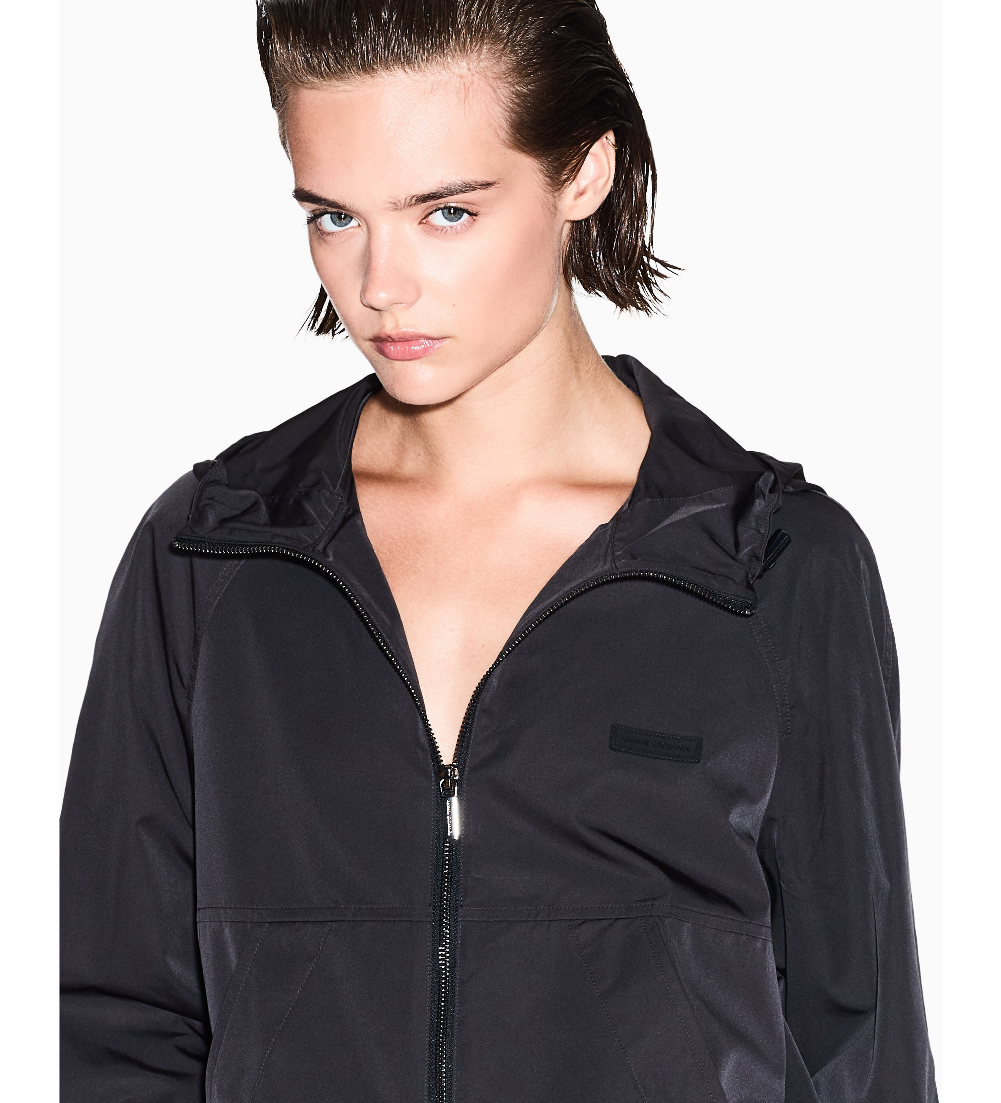 Giacca antivento con cappuccio realizzata in poliestere e nylon riciclati, progettata per offrire una protezione antivento leggera con uno stile pulito e moderno. Il suo look classico è impreziosito da una distintiva toppa sul petto, che aggiunge un tocco elegante e contemporaneo.