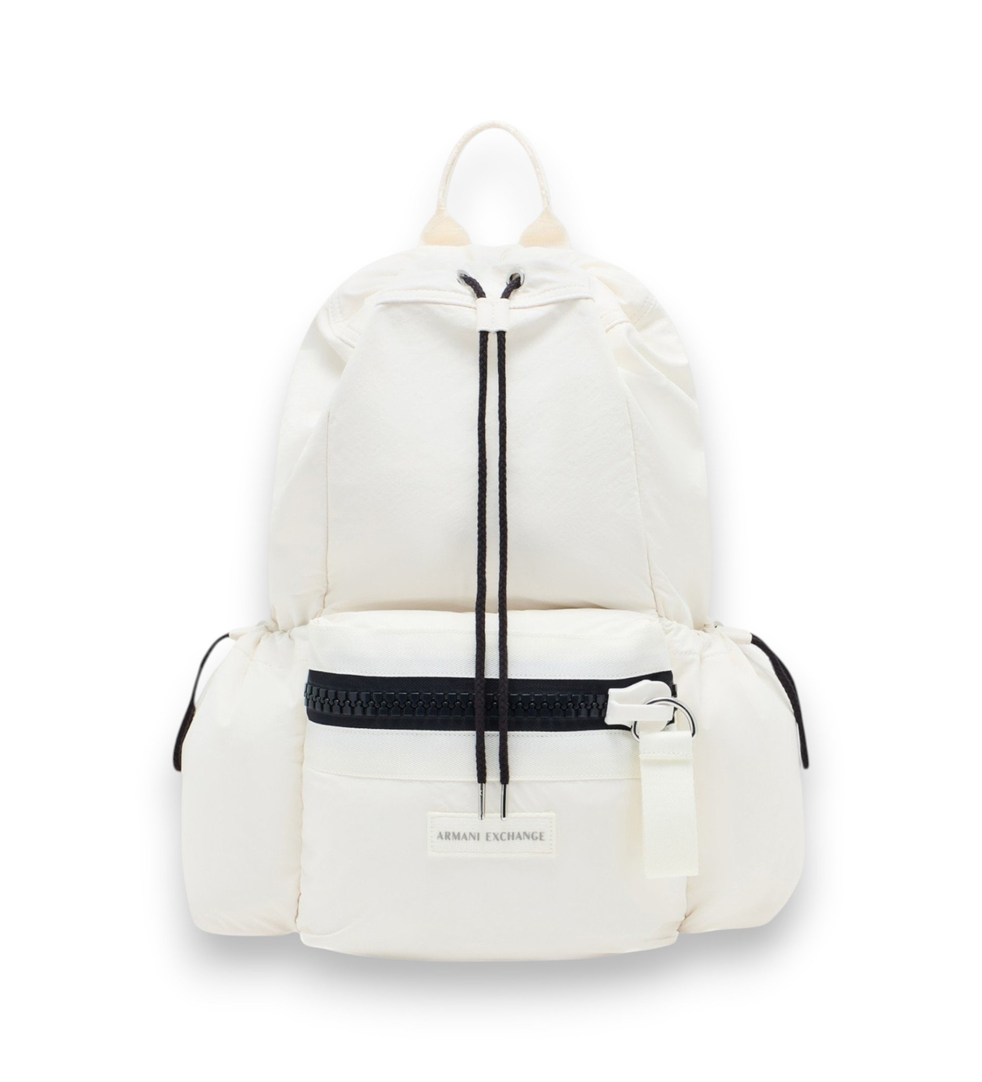 Uno zaino da uomo contemporaneo color crema, pensato per chi cerca funzionalit senza rinunciare allo stile. Realizzato in resistente poliammide, presenta una pratica chiusura con coulisse, una tasca frontale con zip per un accesso rapido e due tasche laterali per una migliore organizzazione. Il logo Armani Exchange sul davanti aggiunge un tocco distintivo. Versatile e leggero, la scelta perfetta per l'uso quotidiano e i brevi viaggi.