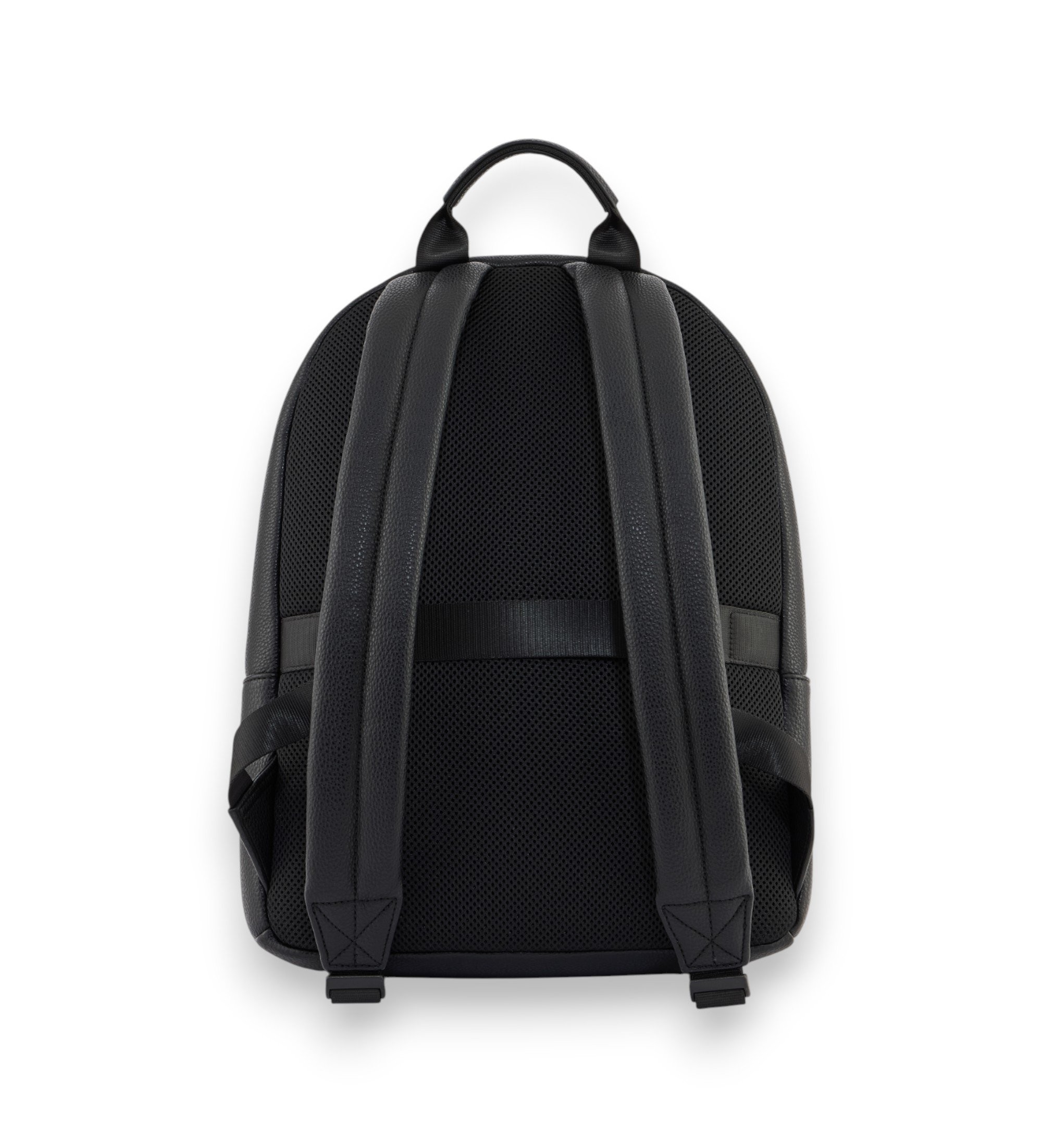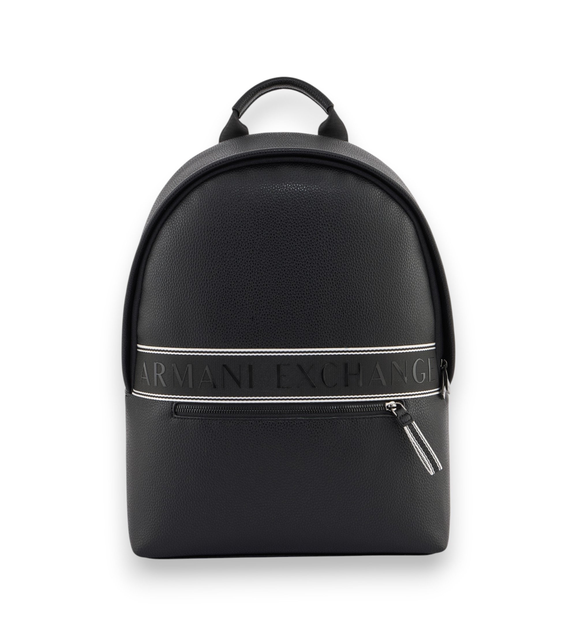 Zaino in similpelle effetto granulato, caratterizzato da una striscia orizzontale sul davanti e dal logo in rilievo come elemento principale. Un accessorio moderno e sofisticato che unisce praticit e stile raffinato, ideale per l'uso quotidiano e i viaggi.
