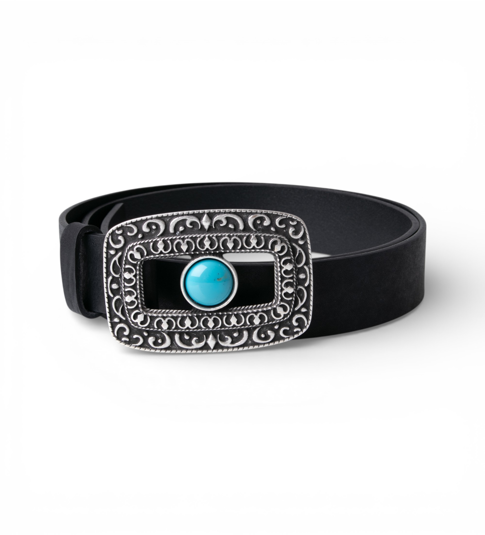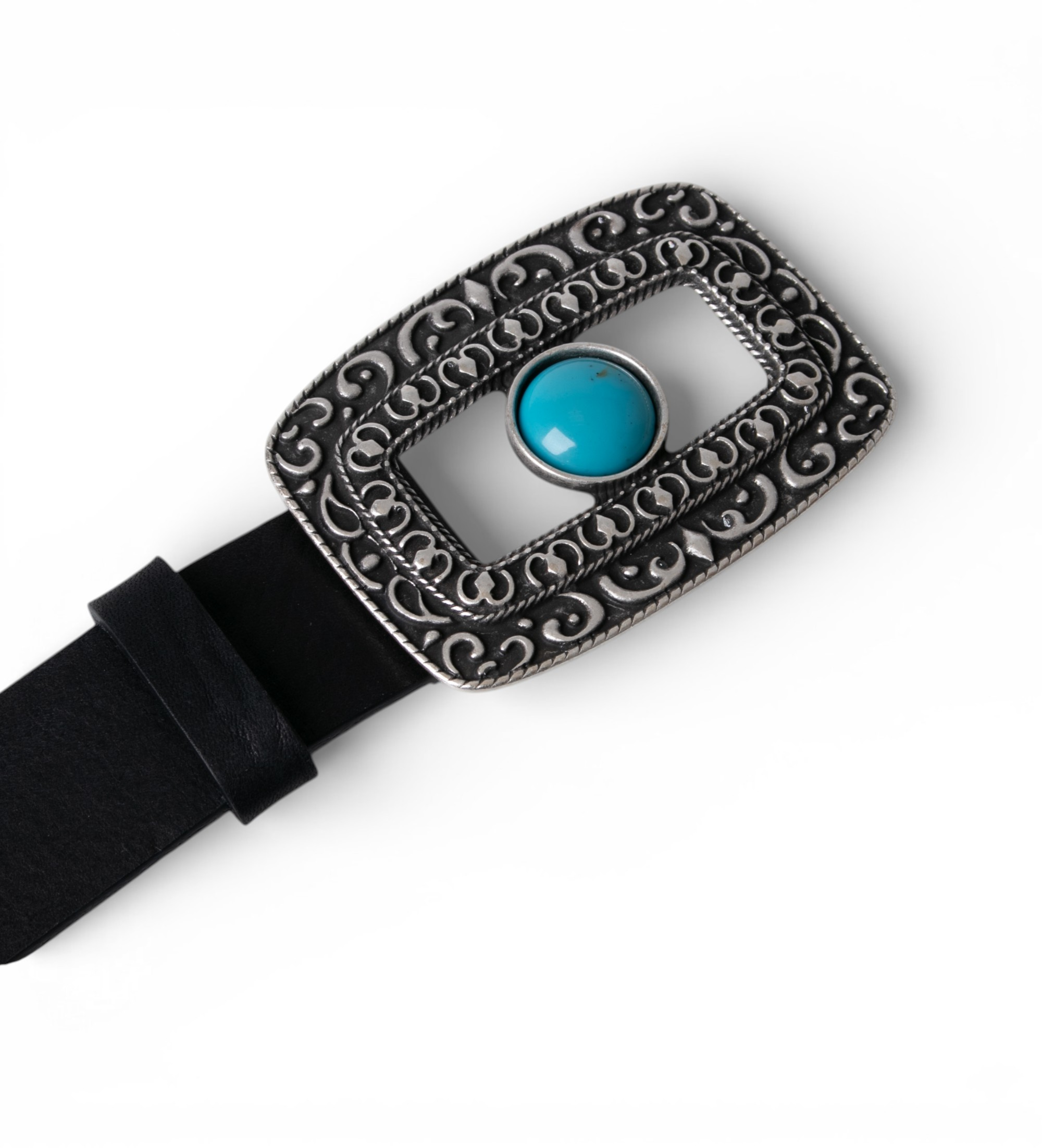 Cintura in vera pelle con fibbia in metallo oversize, un pezzo che definisce la silhouette con carattere e distinzione. Un accessorio senza tempo che impreziosisce qualsiasi look, dal più casual al più sofisticato.
