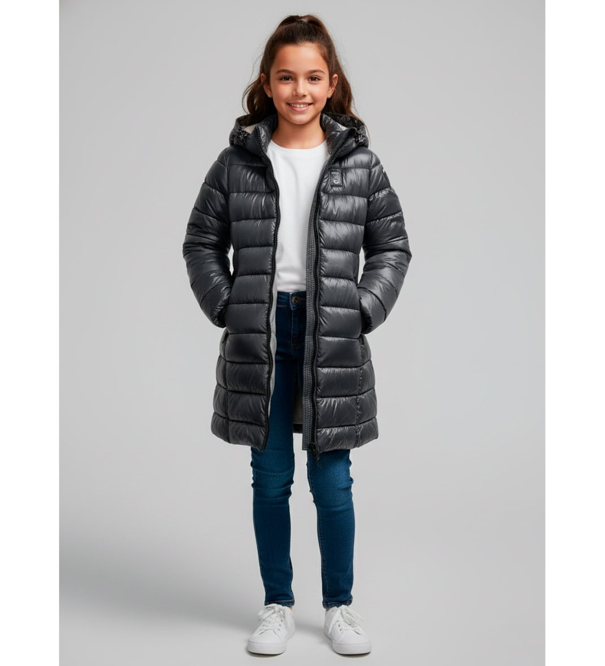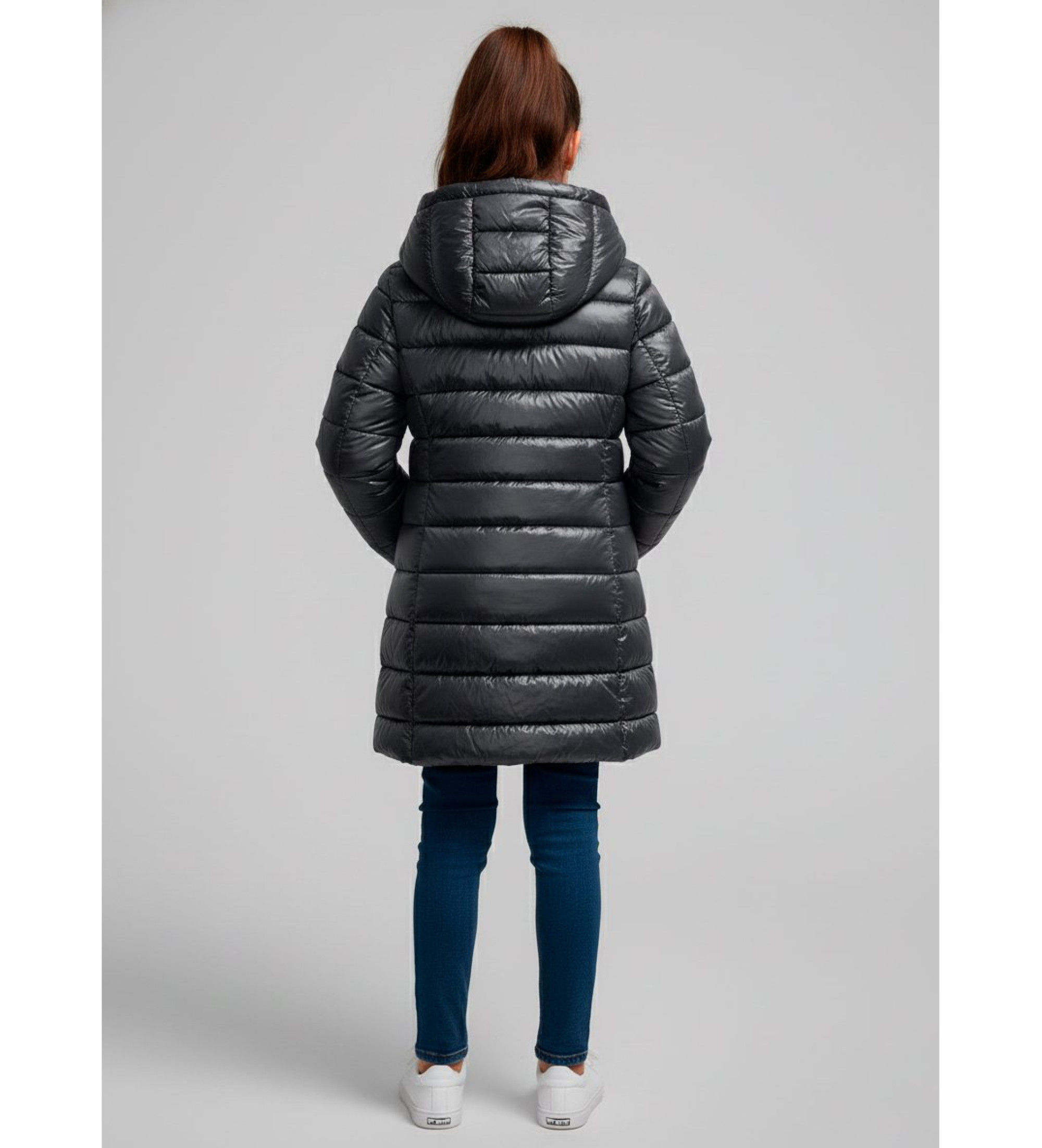 Giacca invernale lunga in nylon microincrespato con cappuccio cucito a linee orizzontali. Questo capo presenta imbottitura ecologica, colori alla moda e vestibilit slim.