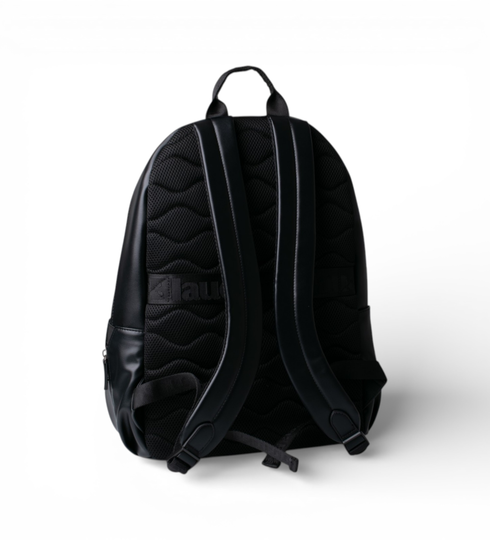 Zaino Blauer in total black, un modello urbano e sofisticato che coniuga un design pulito e minimalista con la funzionalit necessaria anche per la vita quotidiana pi impegnativa. La finitura in morbida pelle sintetica e i dettagli in metallo scuro a contrasto creano un look coerente ed elegante, con l'inconfondibile firma del brand.