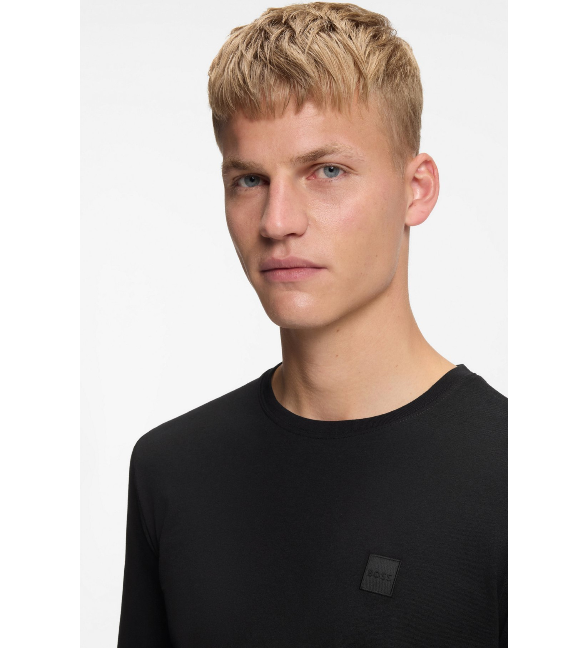 Questa versatile T-shirt BOSS Menswear ha un taglio dritto ed realizzata in jersey di cotone traspirante. Presenta una toppa con logo tono su tono sul lato sinistro del petto.