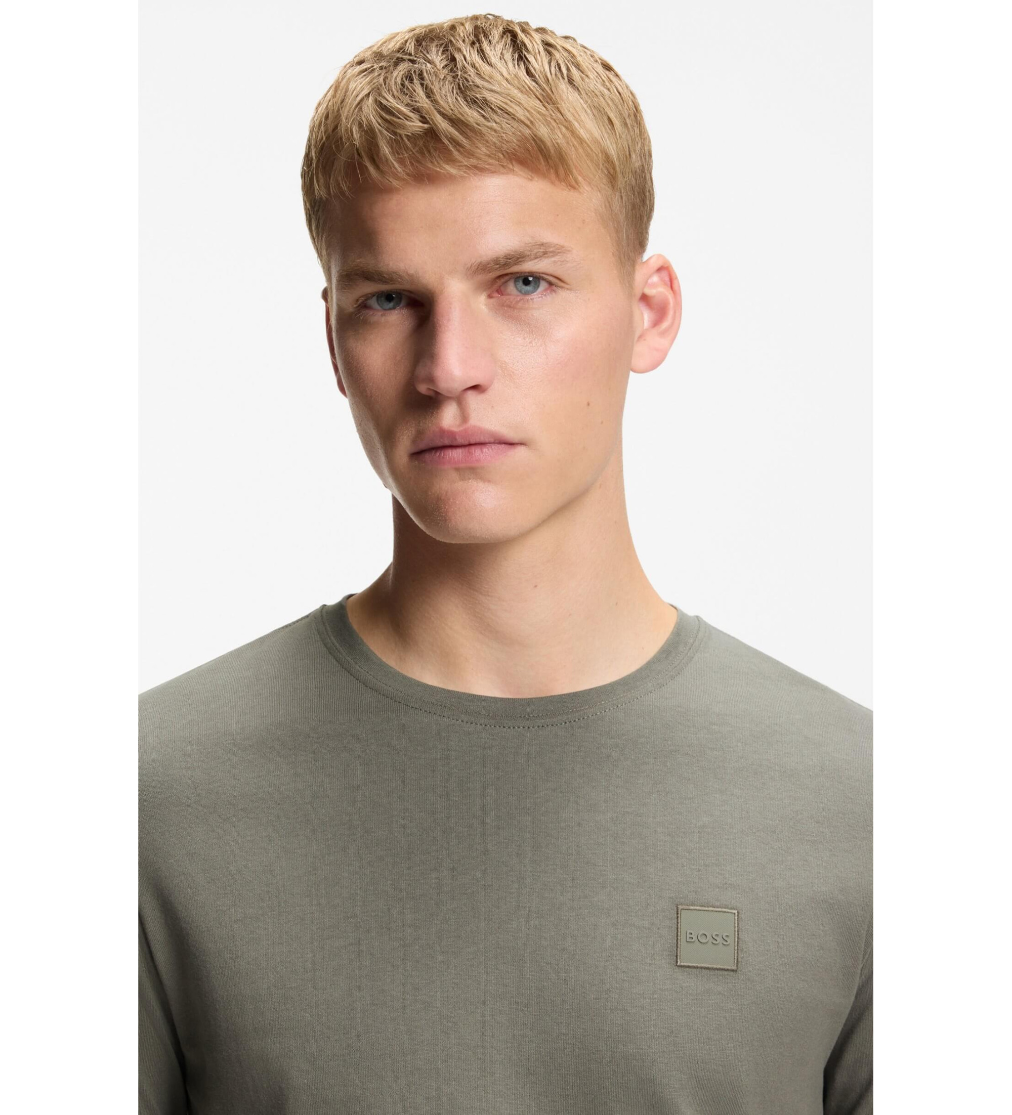 Questa versatile T-shirt BOSS Menswear ha un taglio dritto ed è realizzata in jersey di cotone traspirante. Presenta una toppa con logo tono su tono sul lato sinistro del petto.