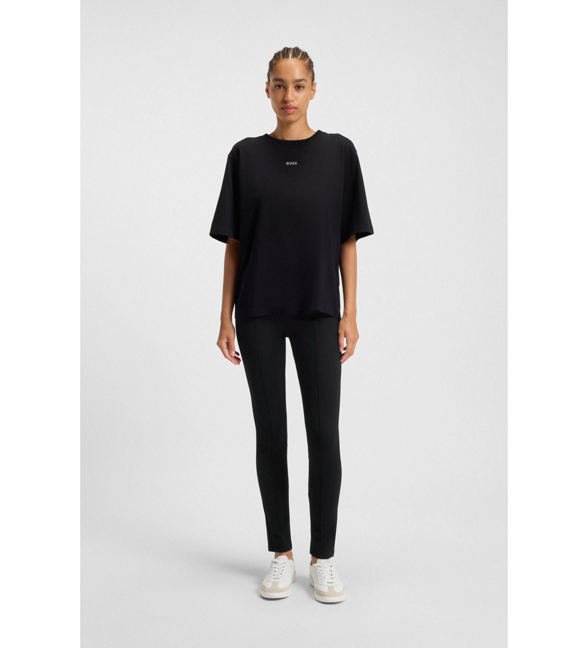 Pensati per la donna moderna, questi eleganti pantaloni elasticizzati BOSS neri si distinguono per il loro taglio slim e sofisticato. Ideali per uno stile casual ma raffinato, si abbinano bene a una variet di outfit quotidiani. Realizzati in materiale sintetico, offrono comfort e libert di movimento, rendendoli la scelta perfetta per ogni occasione.