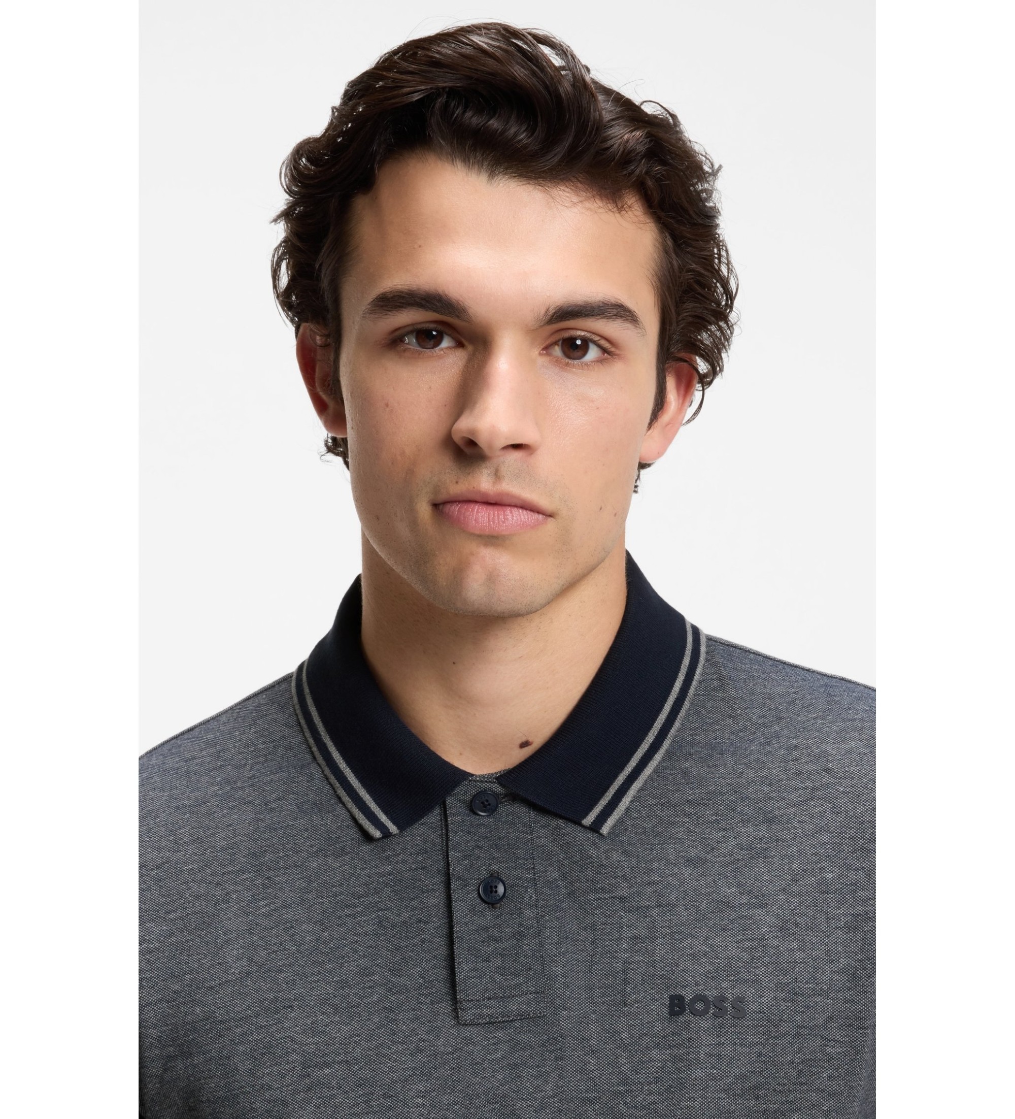 Questa polo dalla vestibilità comoda è realizzata in morbido piqué di cotone per garantire comfort e una sensazione naturale. Pensata appositamente per lui, presenta un colletto a contrasto per un tocco di personalità in più e una stampa del logo tono su tono che completa discretamente il design. Il suo colore blu navy e la finitura pulita la rendono un capo versatile, perfetto per look casual e contemporanei.