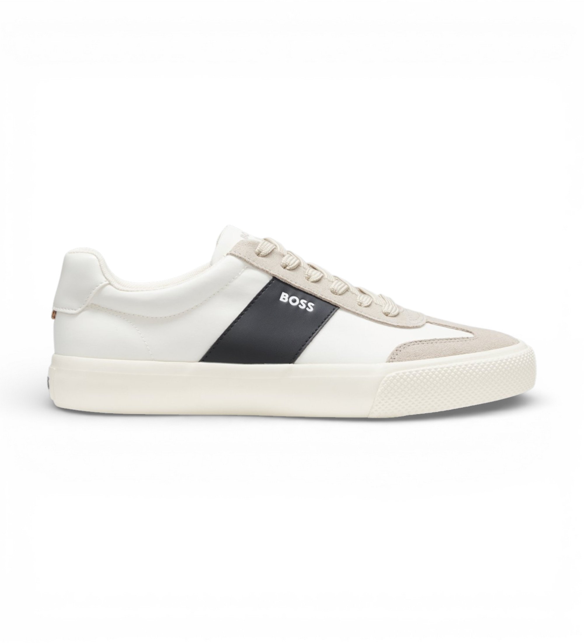 Queste sneakers da uomo BOSS con profili in pelle scamosciata e striscia laterale aggiungono un tocco sportivo ai tuoi look casual. Chiusura con lacci. Dettaglio logo.