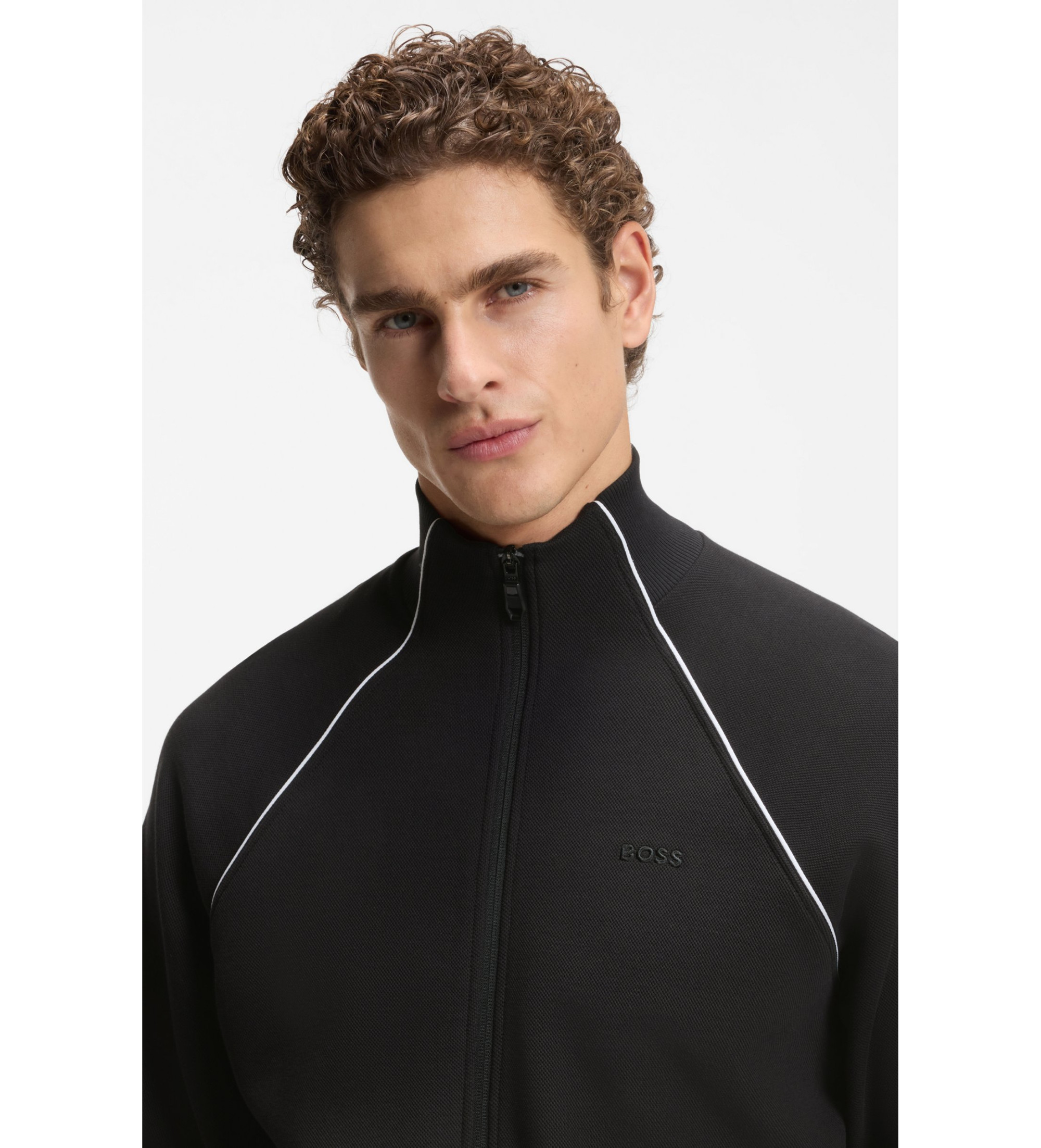 Questa tuta da uomo BOSS in piqué di cotone elasticizzato dalla vestibilità regolare è un capo sportivo essenziale. Presenta dettagli con logo e profili a contrasto.